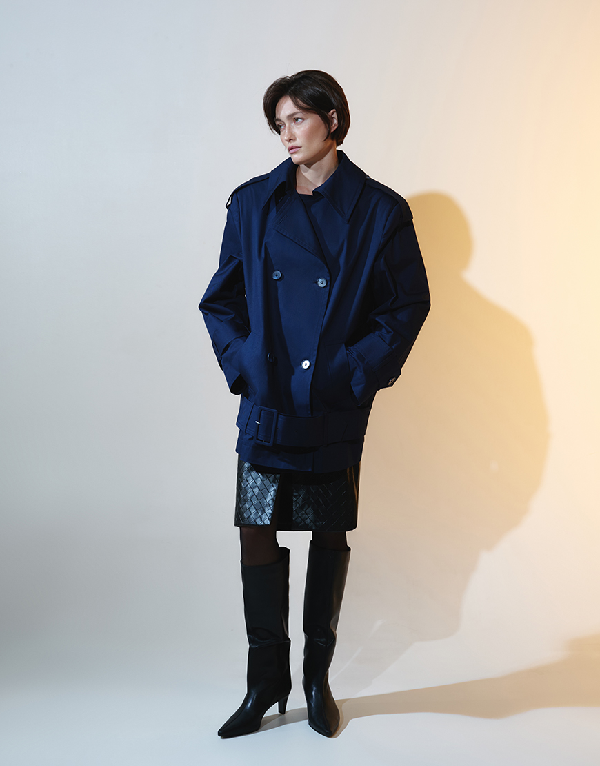 Доставка впродовж 2-5 робочих днівТренч глибокого синього з акцентом на занижену талію