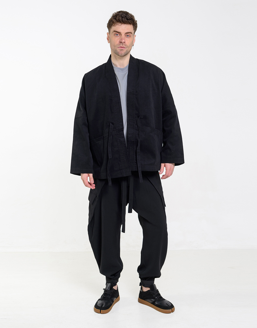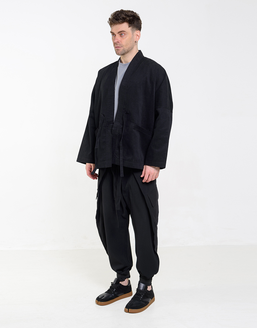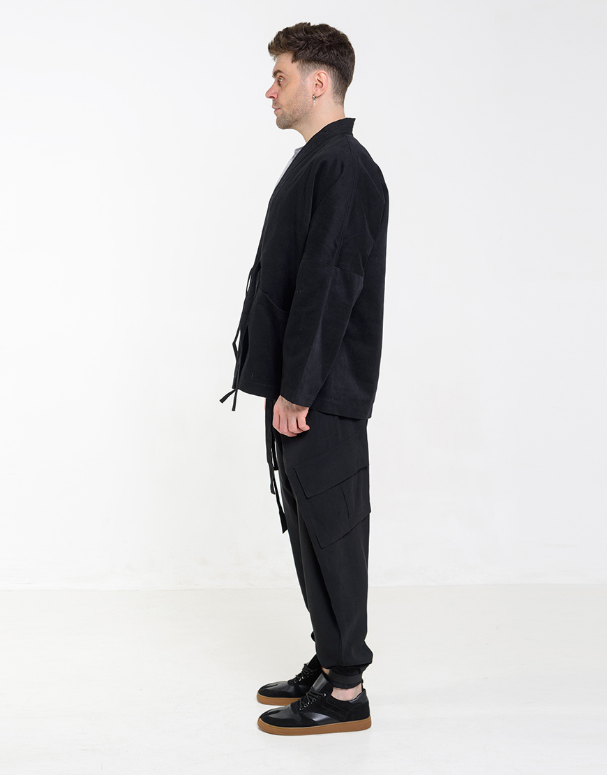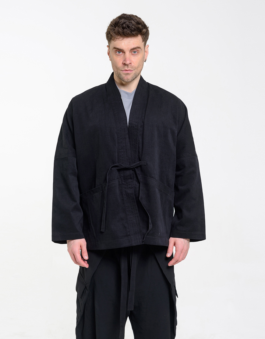 Доставка впродовж 2-5 робочих днівКімоно oversize з цупкої бавовняної тканини. Комір-стійка . Довгі рукави . Накладні кишені на стегнах. Застібається на зав!язку спереду.
