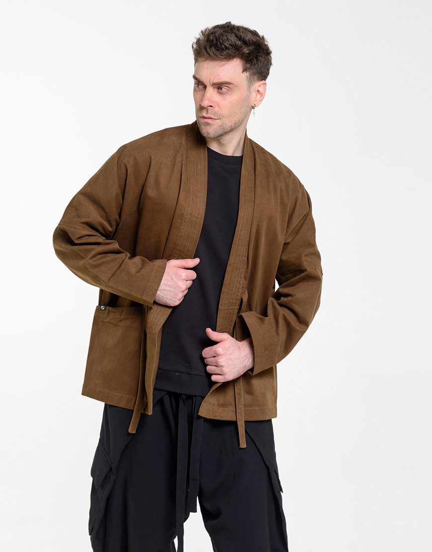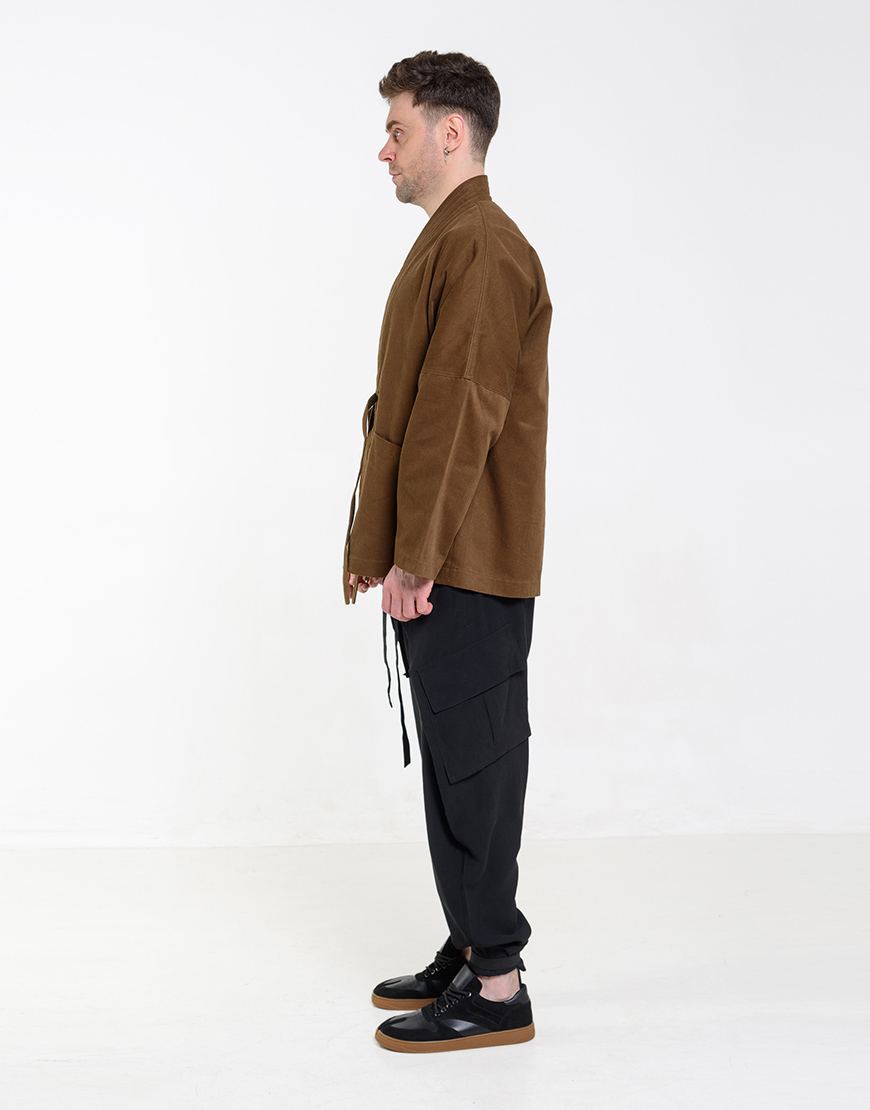 Доставка впродовж 2-5 робочих днівКімоно oversize з цупкої бавовняної тканини. Комір-стійка . Довгі рукави . Накладні кишені на стегнах. Застібається на зав!язку спереду.