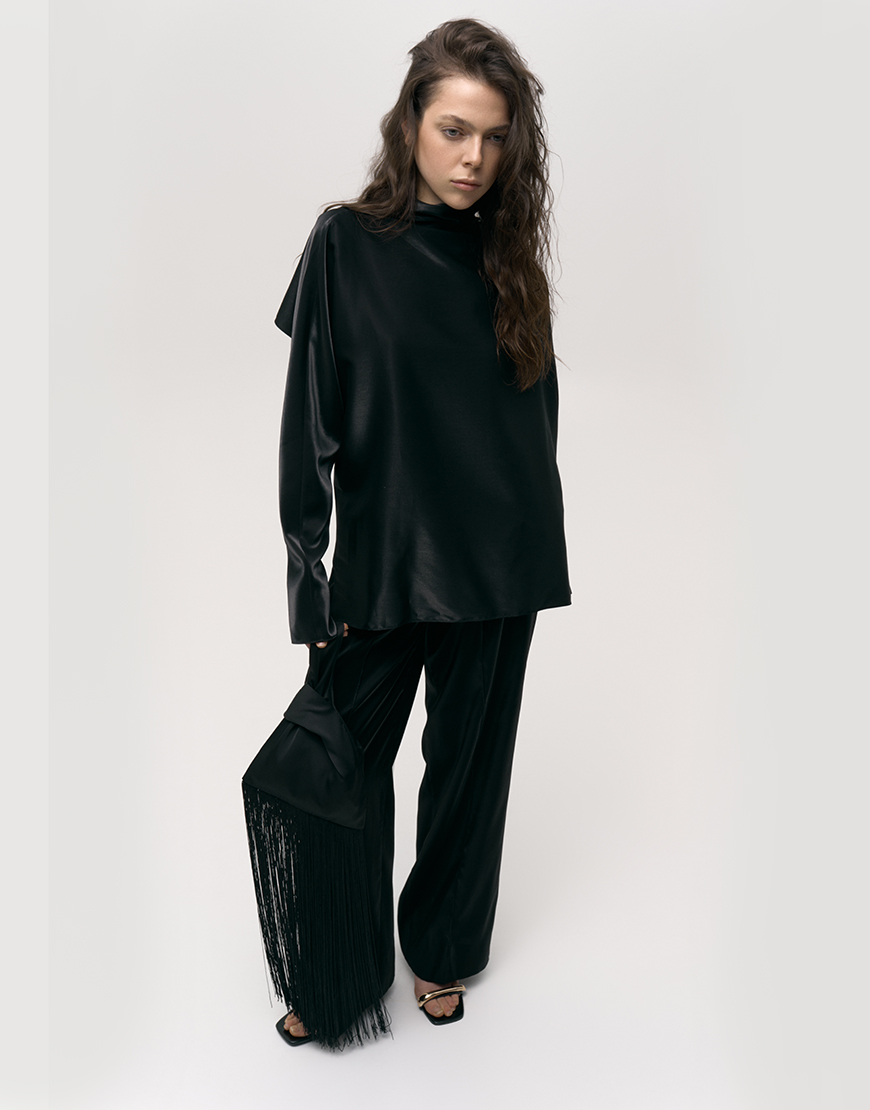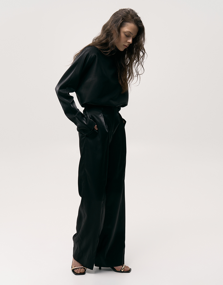 Доставка впродовж 5-12 робочих днівШтани виконані з атласу з рідким ефектом. Ідеальні для вечірніх виходів, ділових образів або як стильний акцент у повсякденному образі.