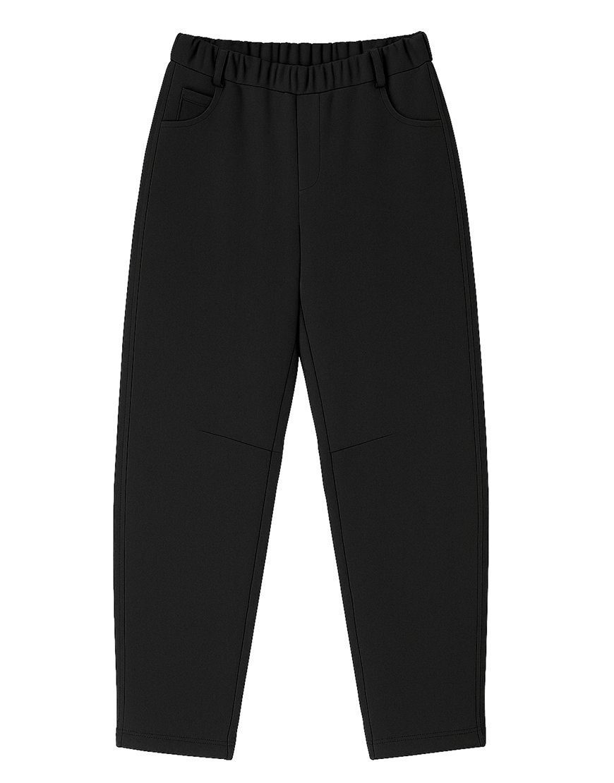 Доставка впродовж 5-12 робочих днівКомфортні штани середньої посадки з м’якого трикотажу. Завдяки еластичному поясу з резинкою та шльовкам під пояс вони забезпечують зручну посадку та універсальність у стилізації. Мають бокові кишені, зручні регульовані фіксатори з резиною внизу та декоративні шви на колінах, що створюють особливу посадку.