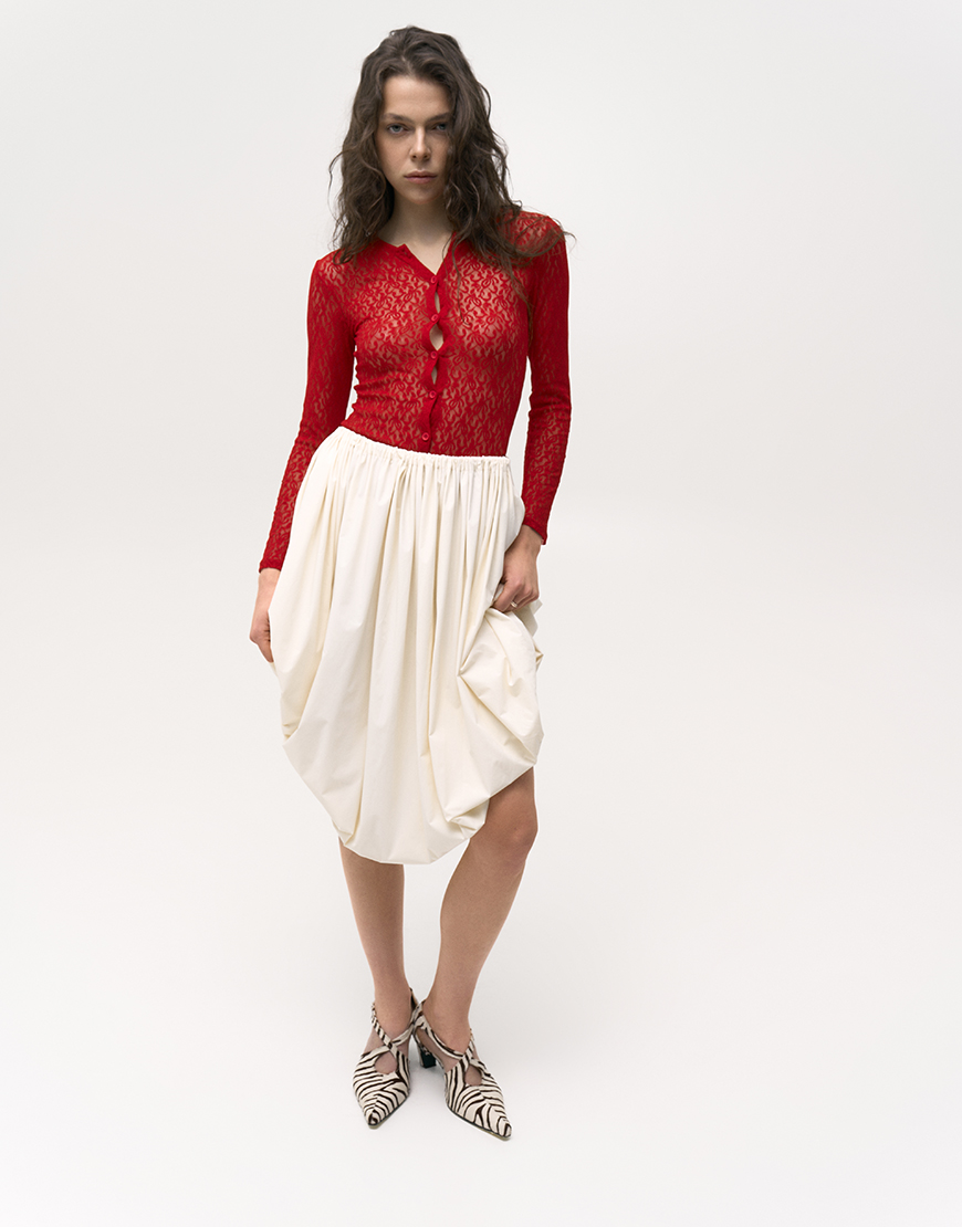 Доставка впродовж 5-12 робочих днівСпідниця молочного кольору виготовлена з високоякісного нейлону. Вона має додаткові внутрішні кріплення з двох сторін що створюють додаткові можливості для стилізації та поле для фантазій.