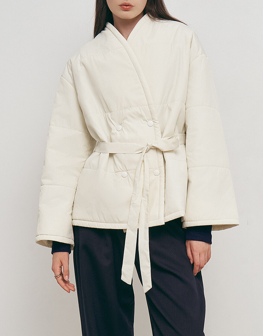 Куртка-кімоно стьобана на утеплювач слімтекс. На кнопках під пояс. З кишенями в бокових швах.