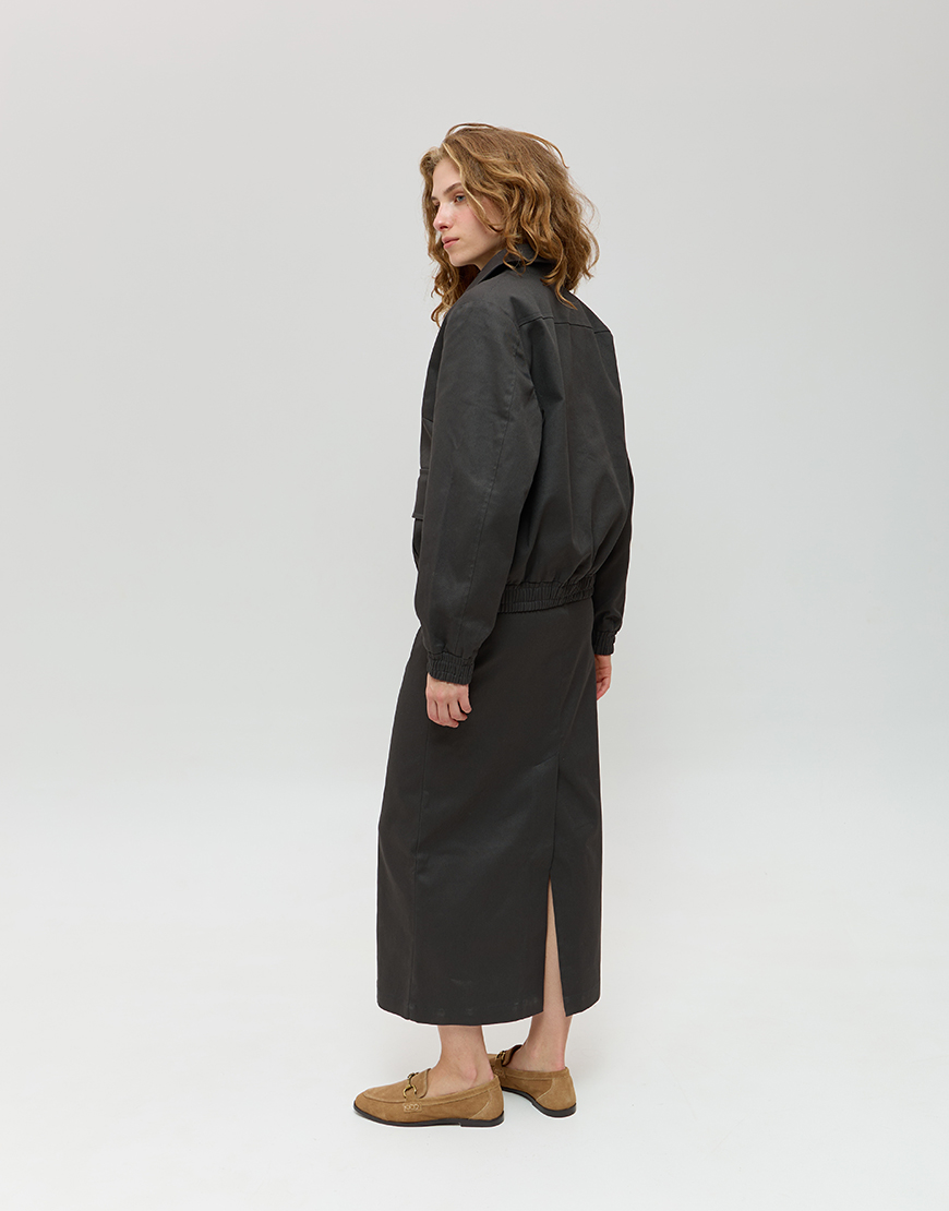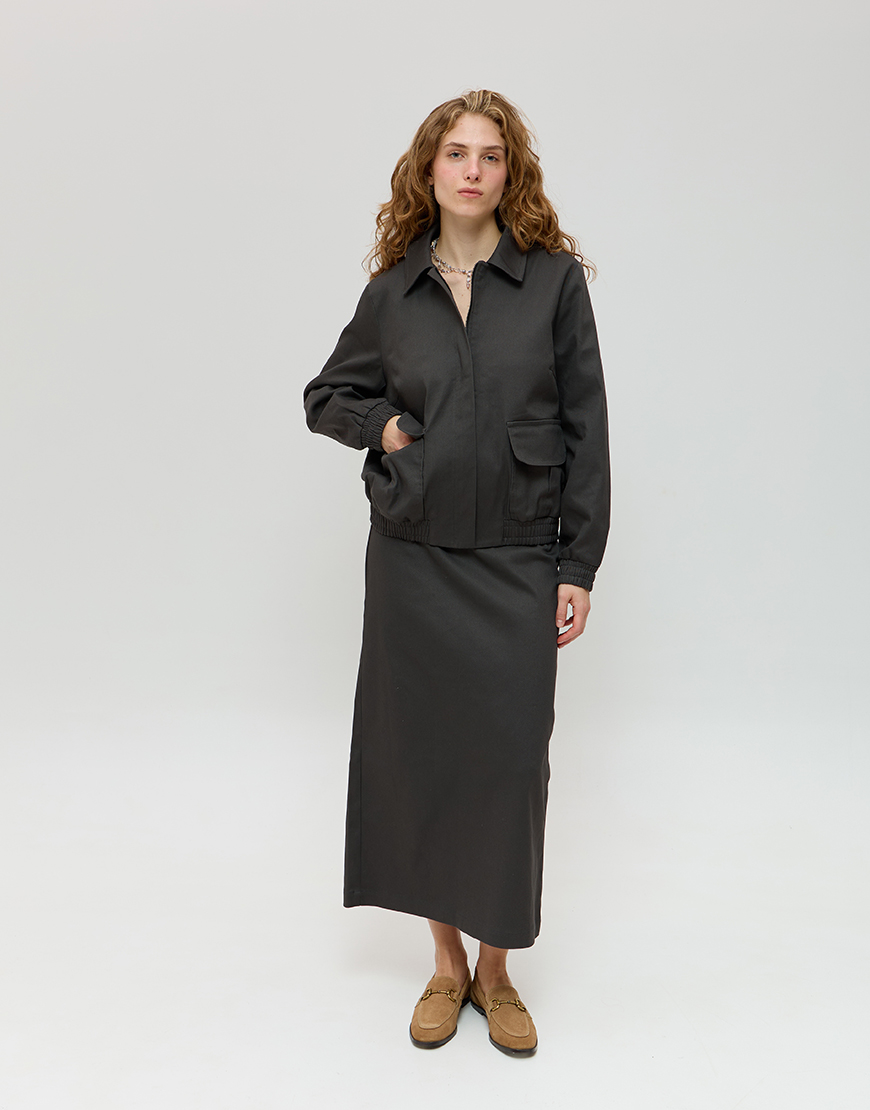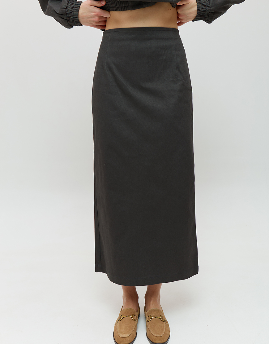 Доставка впродовж 2-5 робочих днівКотонова спідниця прямого крою, сірого колору. Застібка- блискавка