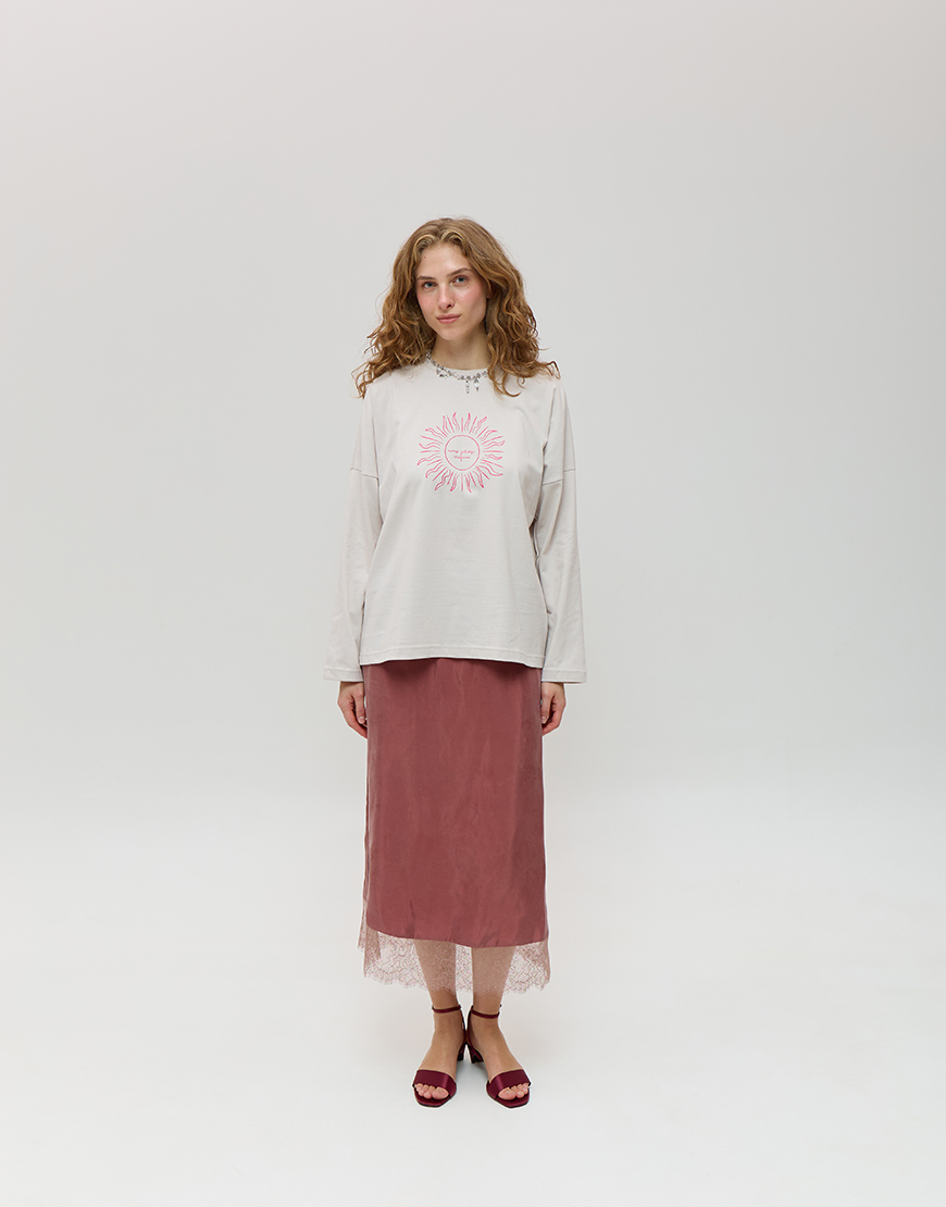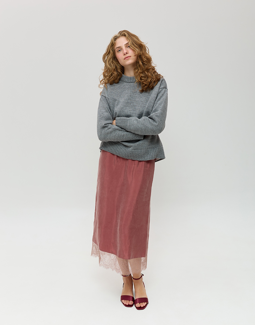 Доставка впродовж 2-5 робочих днівШовкова спідниця з мереживом, прямого силуета