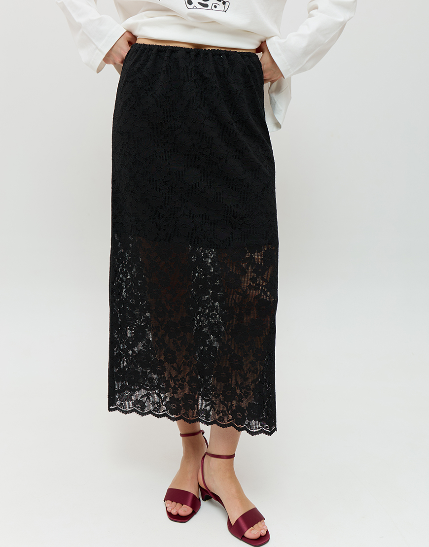 Доставка впродовж 2-5 робочих днівСпідниця чорного кольору, виконана з бавовняного мережева