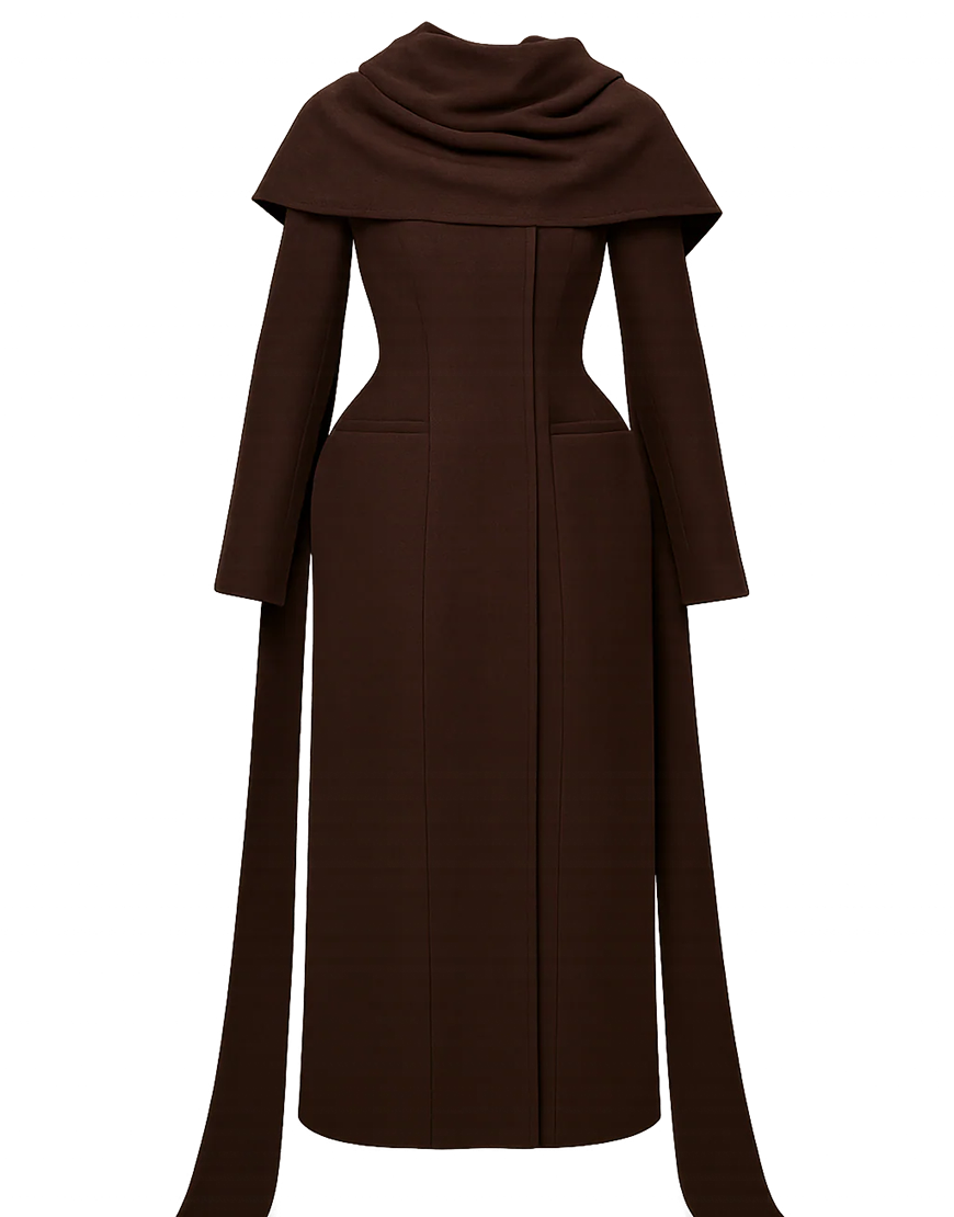 Доставка впродовж 2-9 робочих днівПальто Arche — це про силу жіночності й скульптурну красу форм. Воно має чітко окреслену талію й м’яко розширюється на стегнах, створюючи елегантний силует, який точно не залишиться непоміченим. Довгий шарф додає образу м’якості та руху — ніби огортає вас теплом.