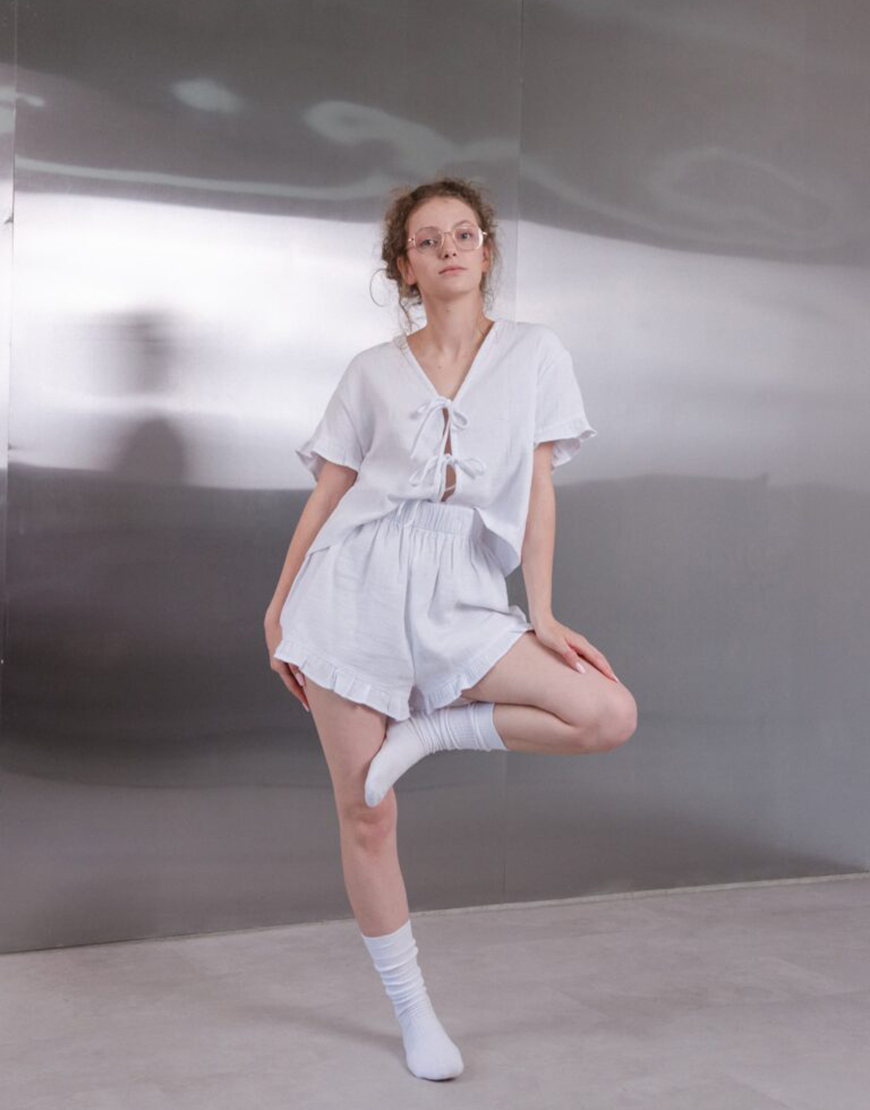 Муслінова піжама на зав’язках та рюшами білого кольору