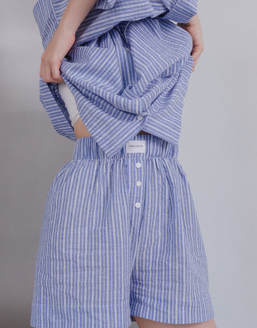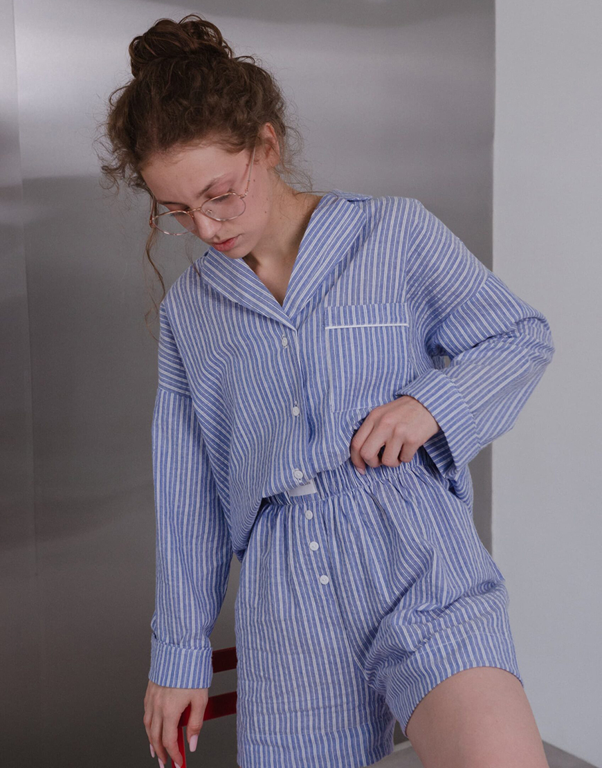 Домашній костюм в смужку з вареної бавовни сорочка і штани