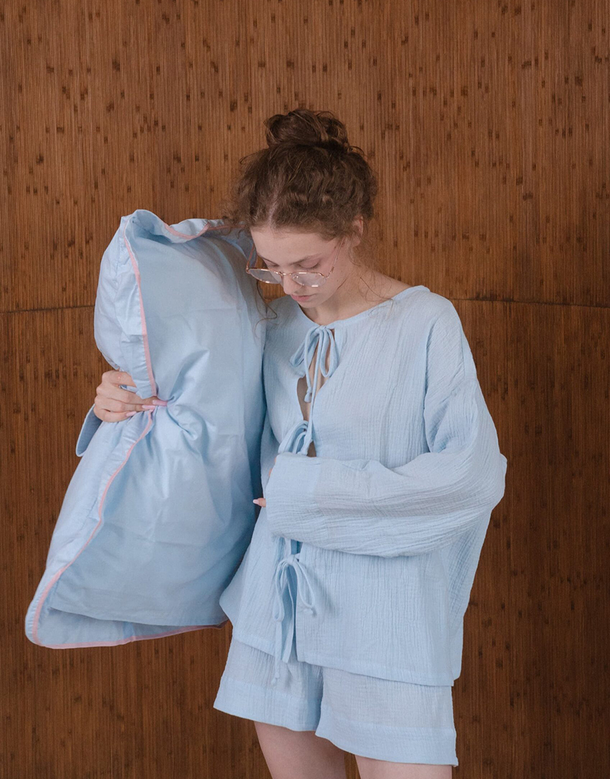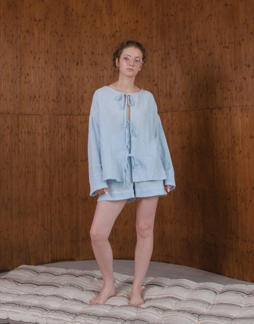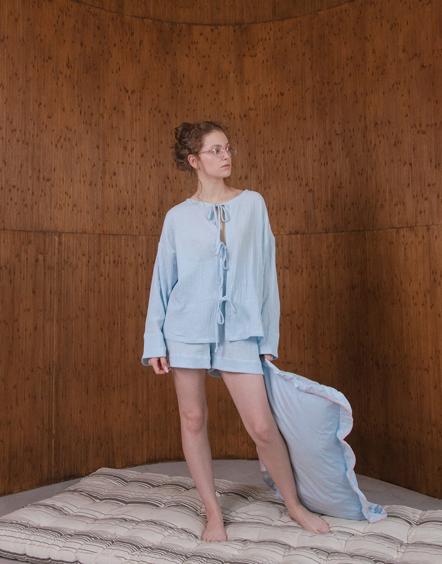Муслінова піжама на зав’язках блакитного кольору