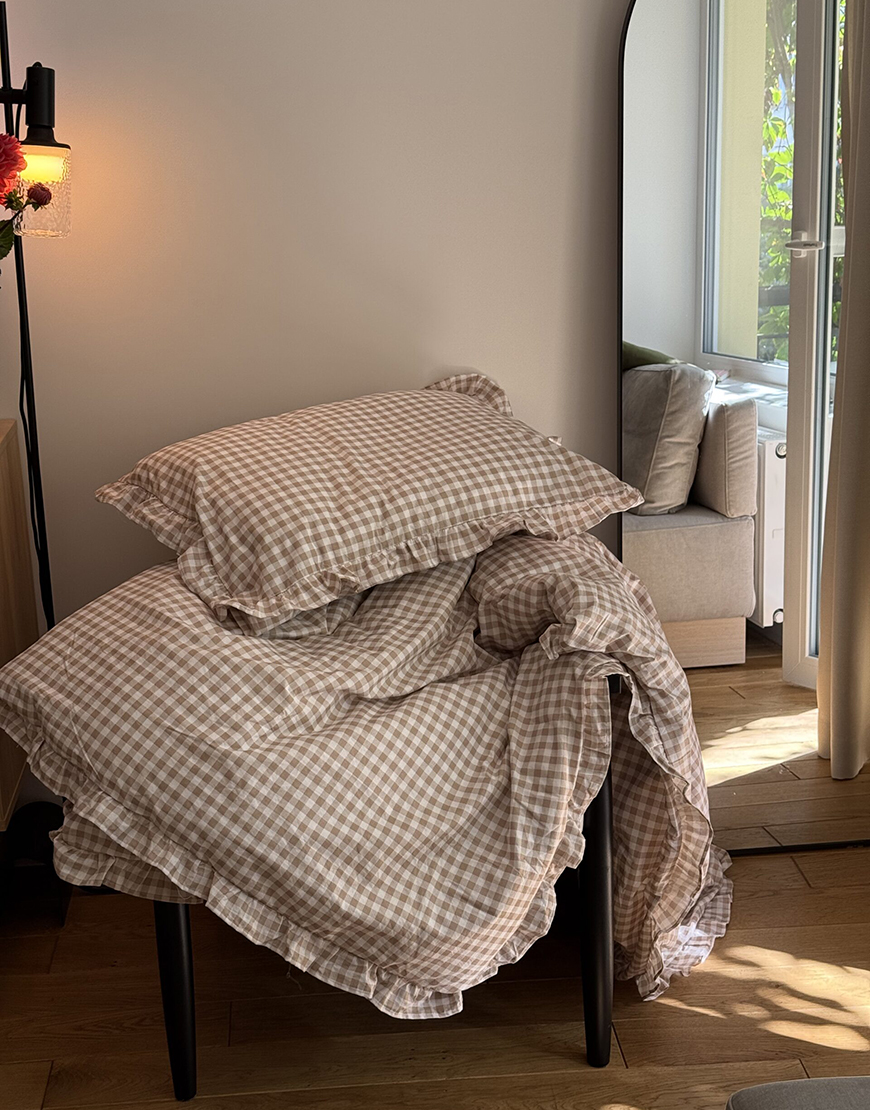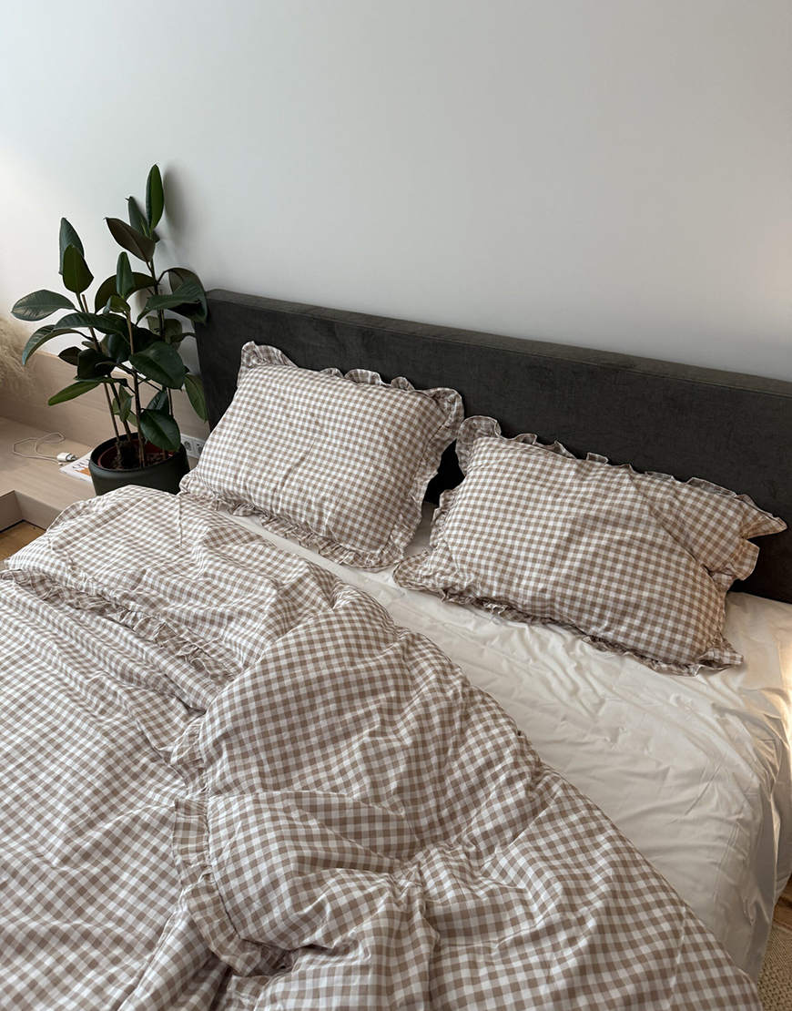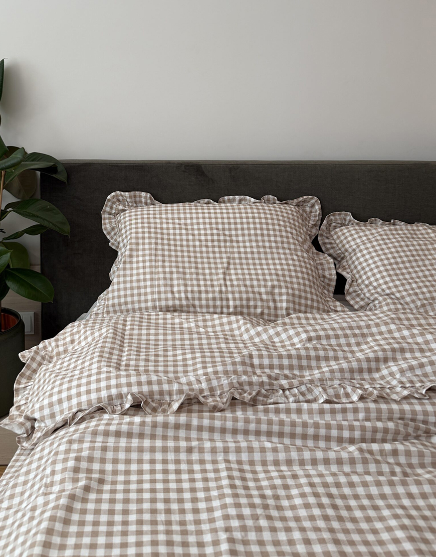 Комплект постільної білизни бежева клітинка з рюшами