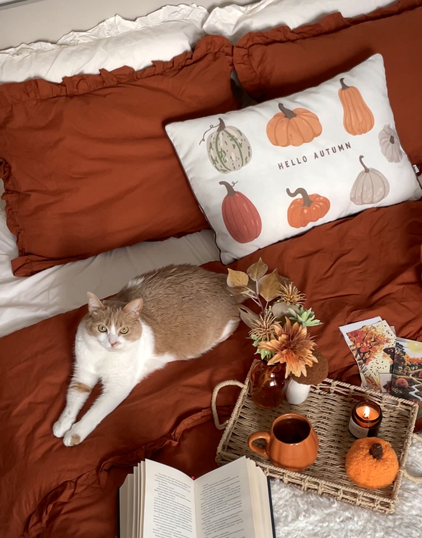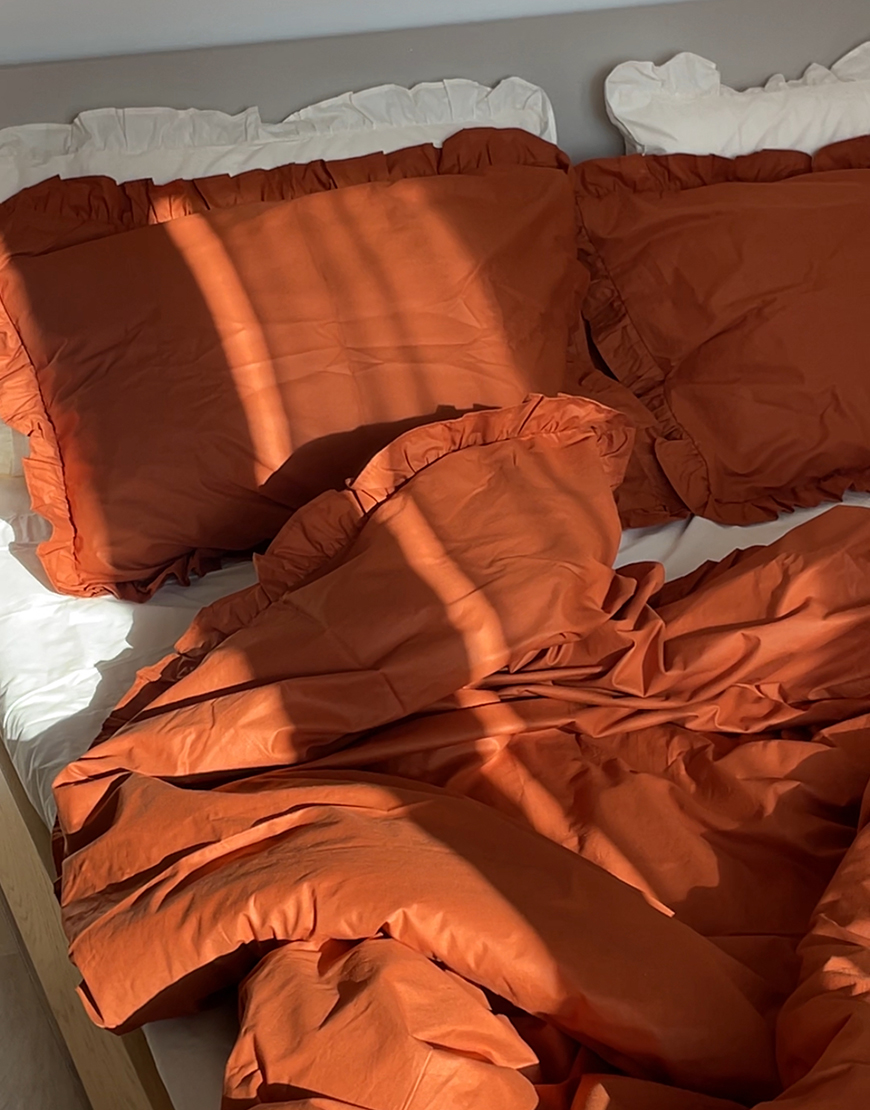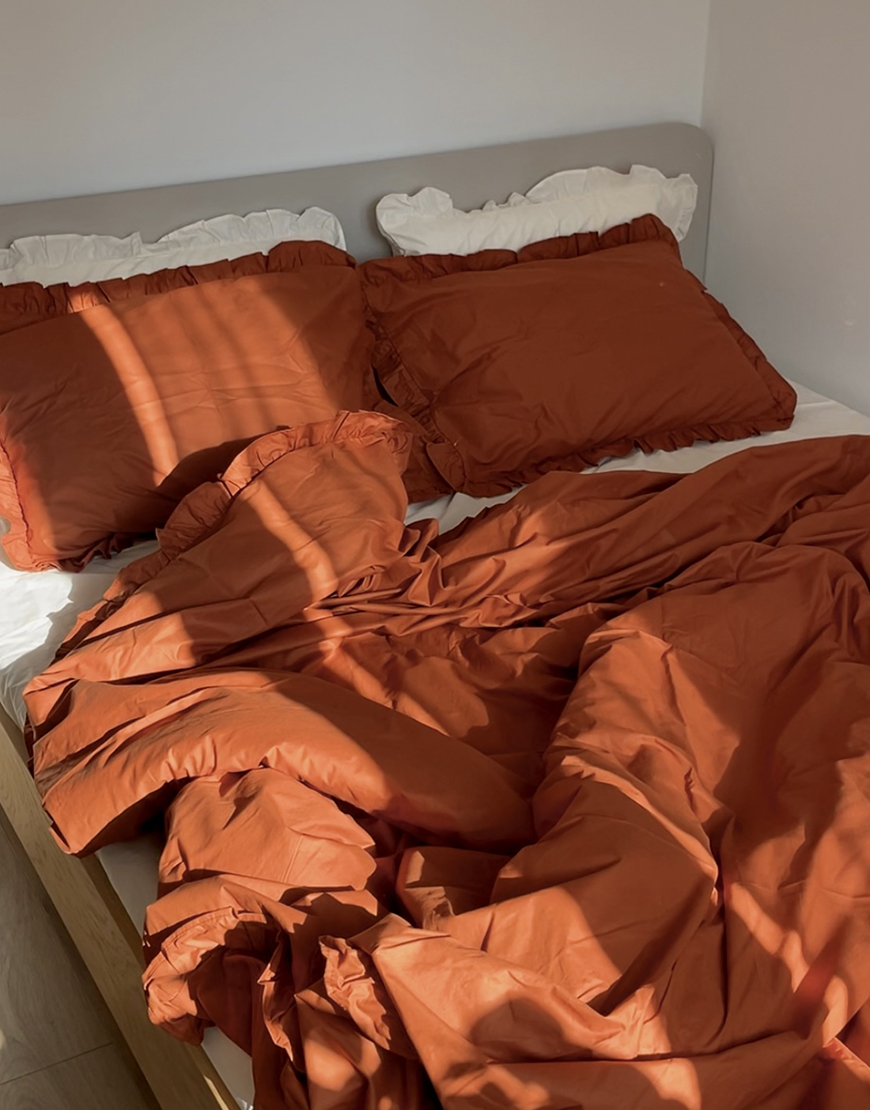 Комплект постільної білизни теракотовий+молочний ранфорс з рюшами
