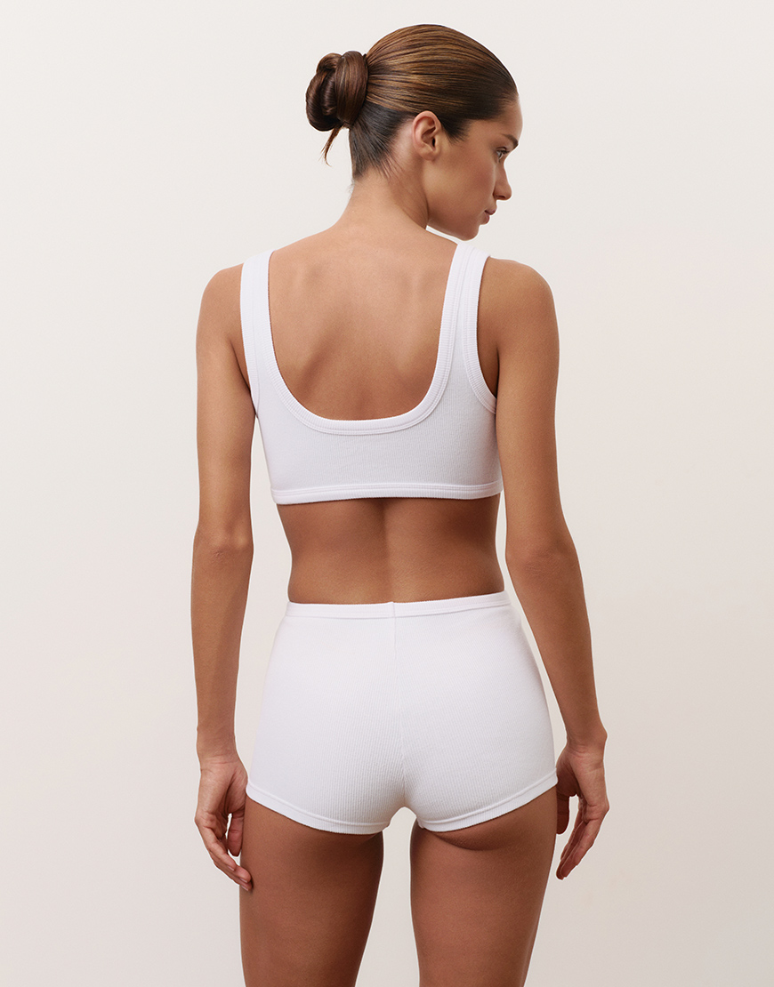 Доставка протягом 2-10 робочих днівБазовий топ з бавовни з вишитим логотипом BG. Заокруглений виріз, відкрита спинка. Мінімалістичний стиль виробу дозволяє легко поєднувати його для повсякденних образів, комбінуючи з білизною або повсякденним одягом.