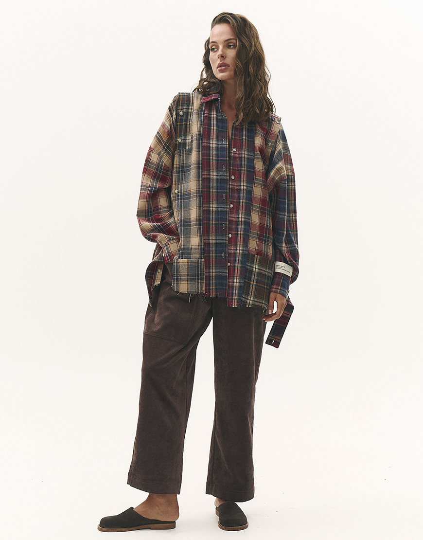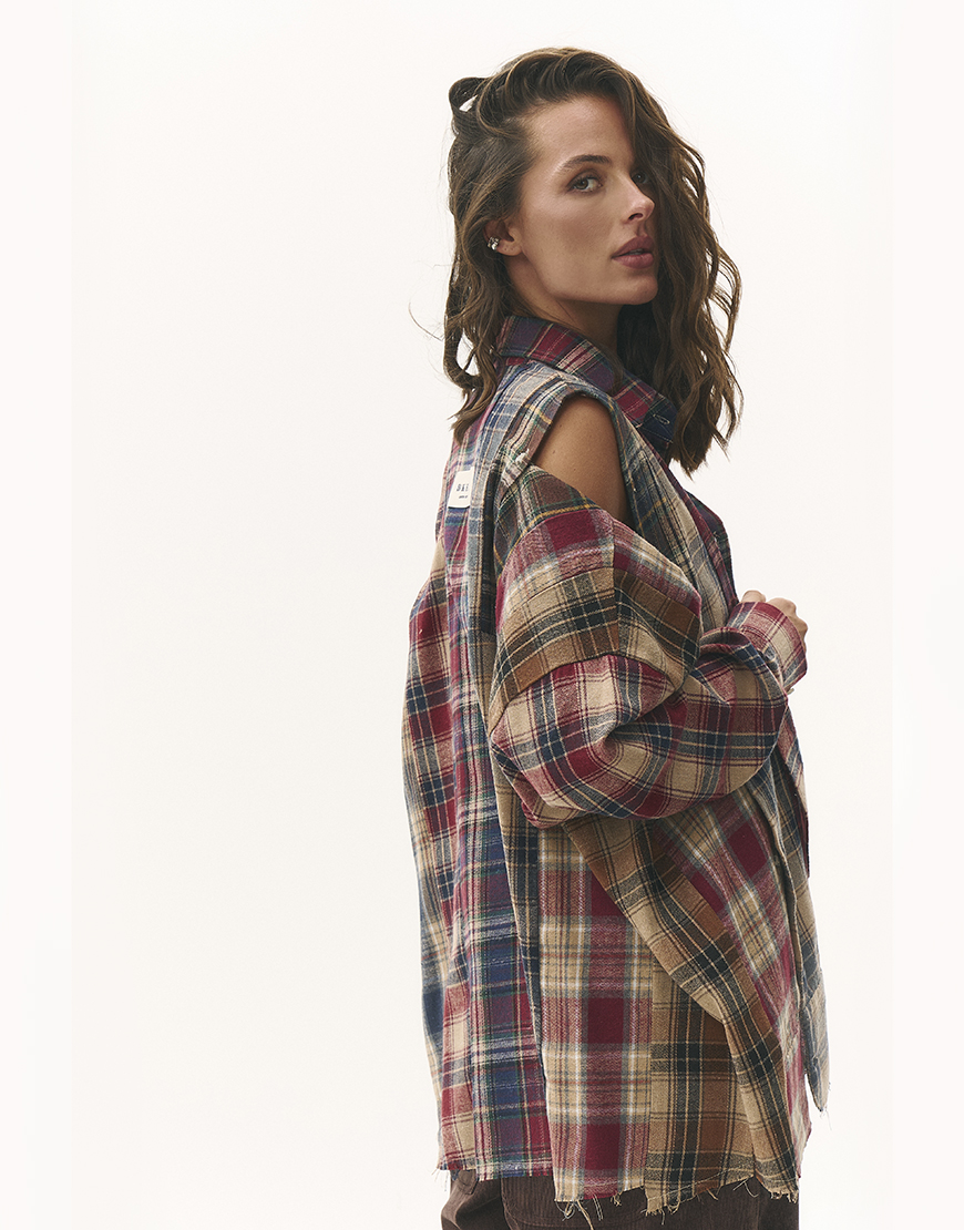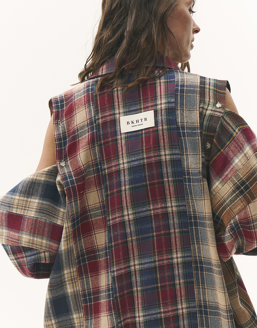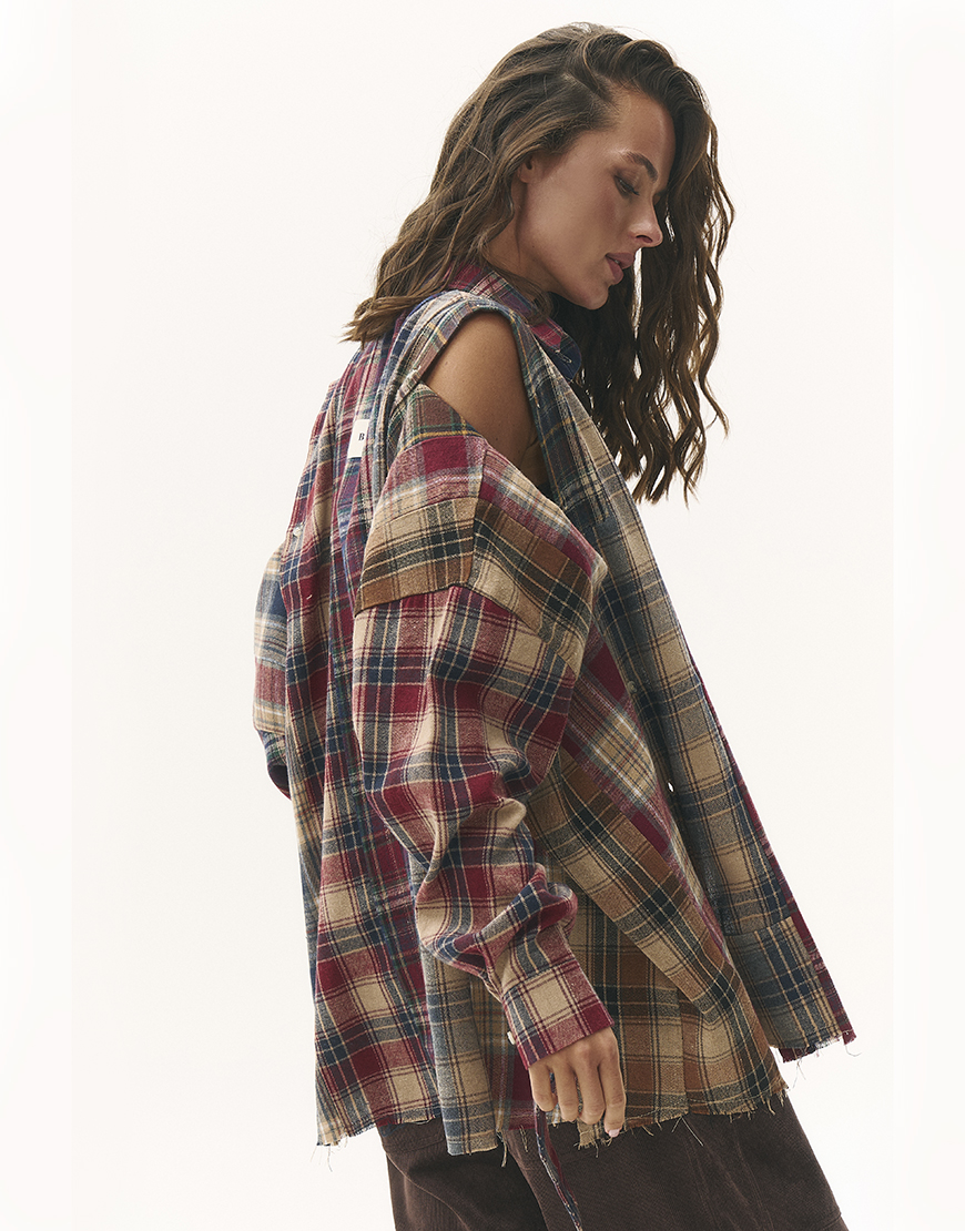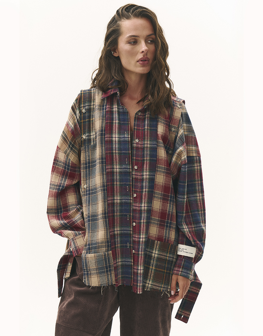 Доставка впродовж 2-5 робочих днівДизайнерська екстра комбі сорочка вільного крою, виготовлена із комбінації якісної фланелі. Має необроблений край понизу та можливістю розтібнути плечі