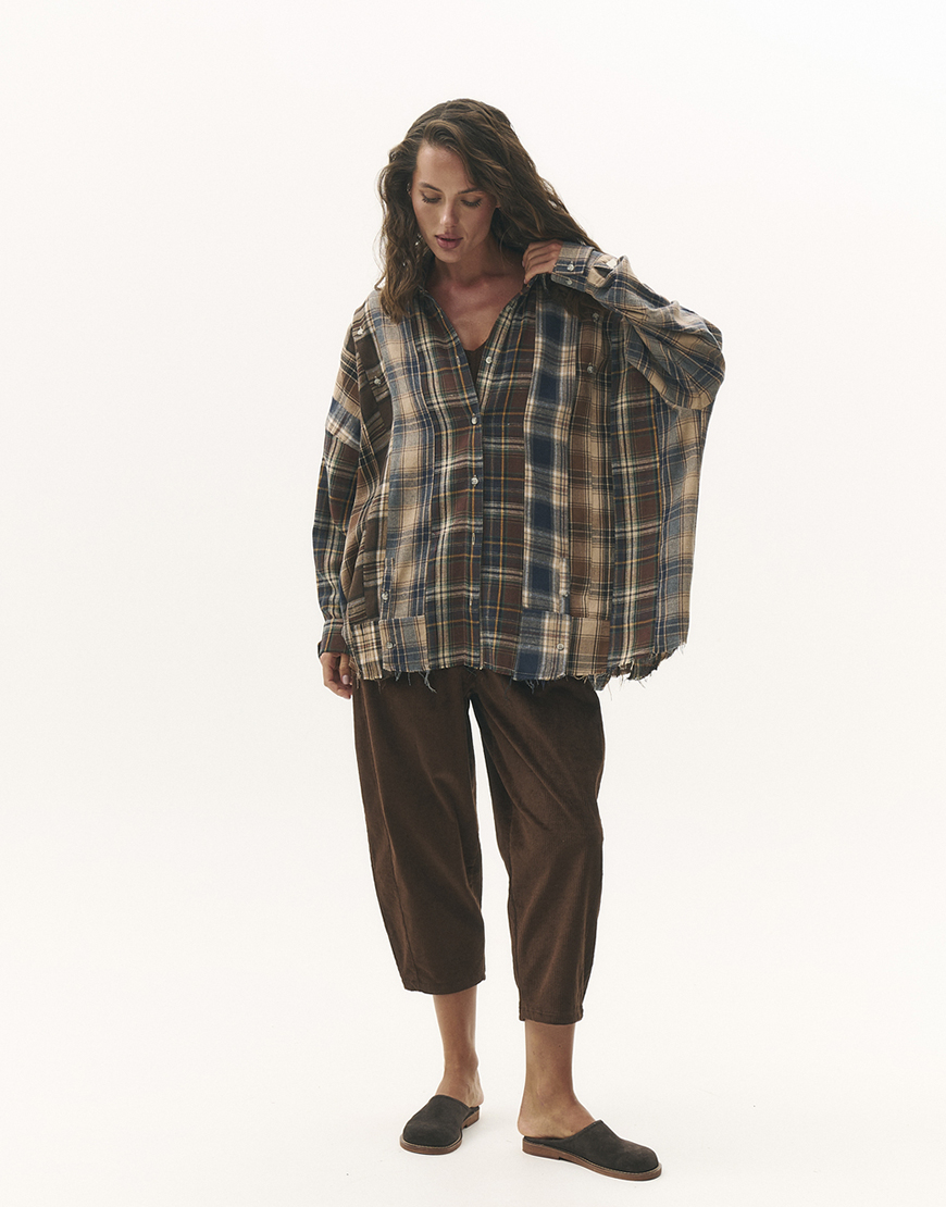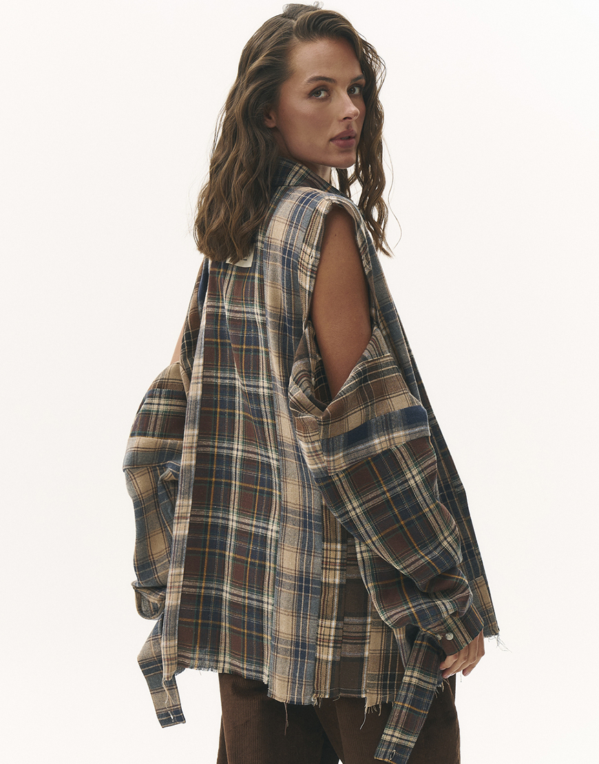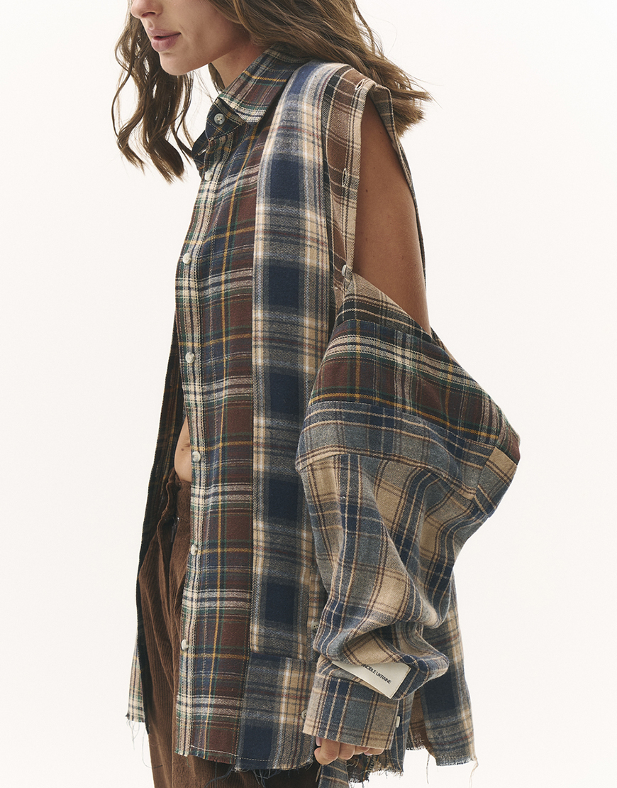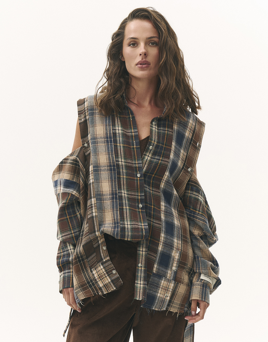 Доставка впродовж 2-5 робочих днівДизайнерська екстра комбі сорочка вільного крою, виготовлена із комбінації якісних тканин. Має необроблений край понизу та можливістю розтібнути плечі