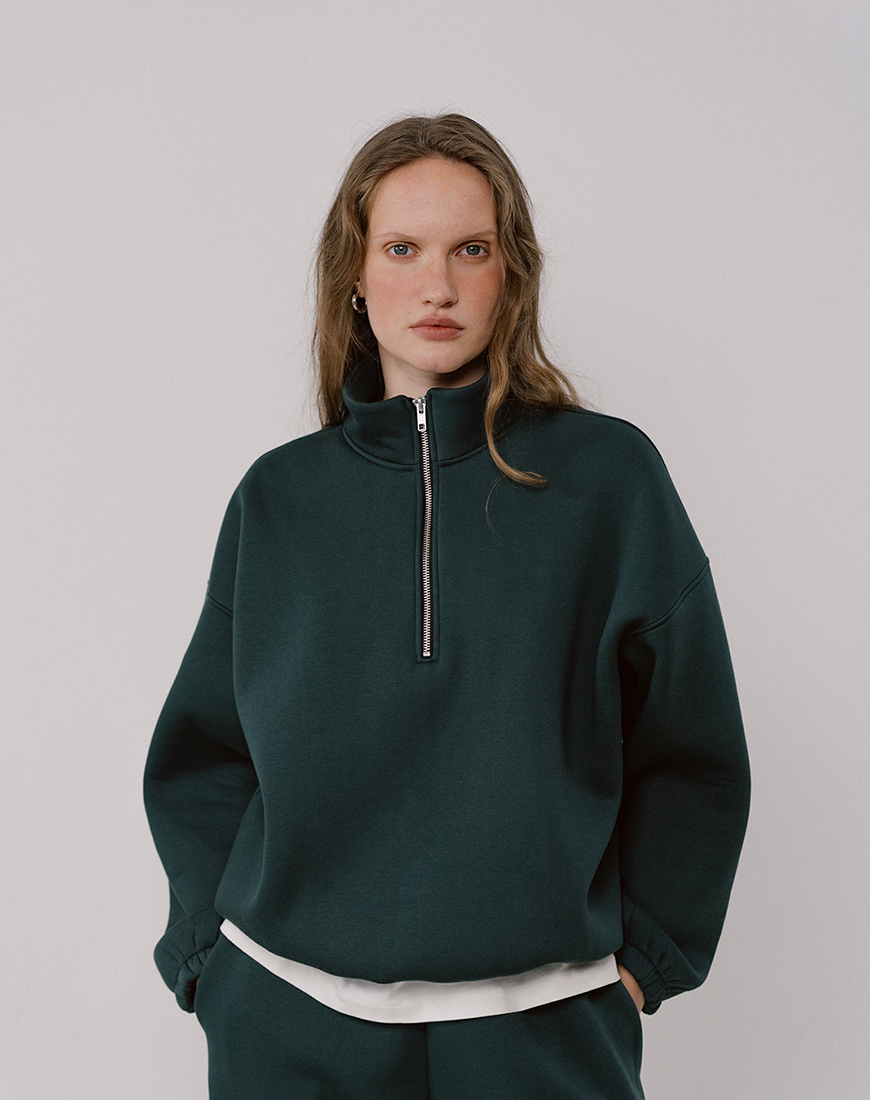 Доставка впродовж 2-5 робочих днівСвітшот з коротким замком з утепленого трикотажу темно-зеленого кольору. Низ виробу та рукави на резинках. Оверсайз крій, широкий рукав. Розмір XS розрахований на зріст до 162 см.