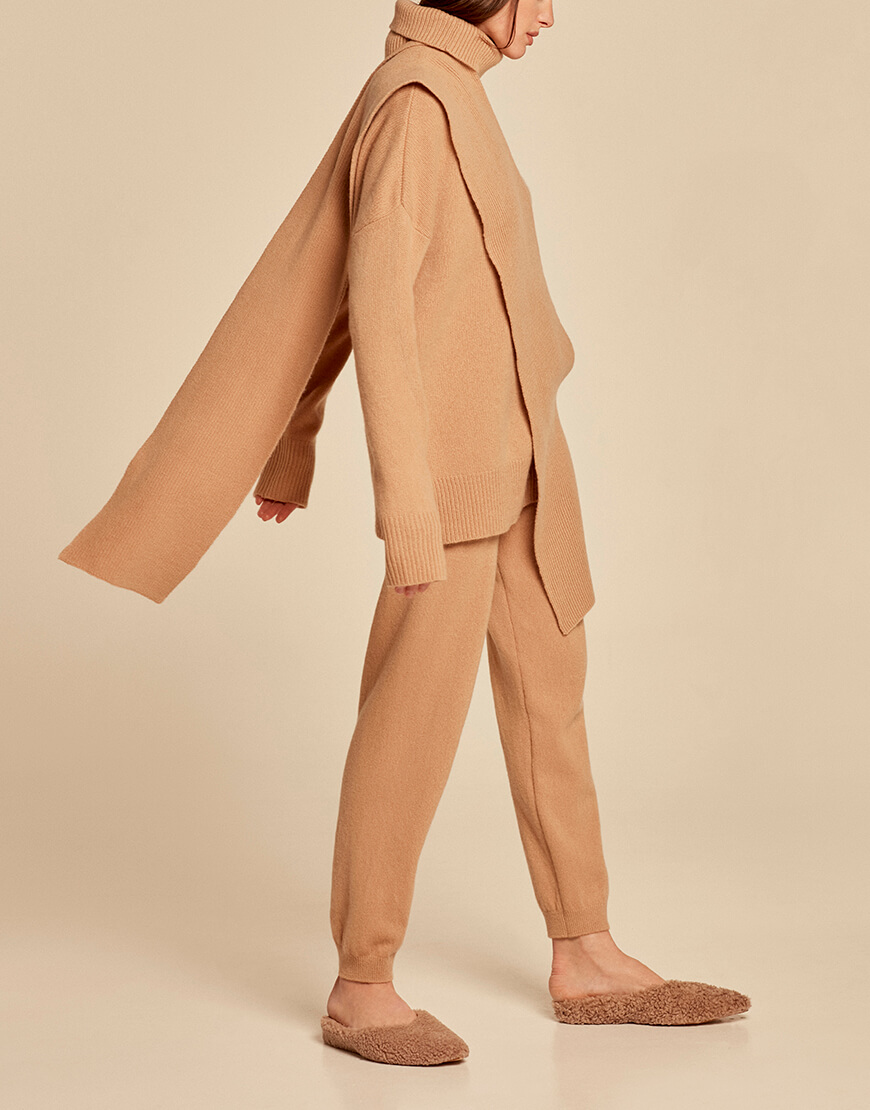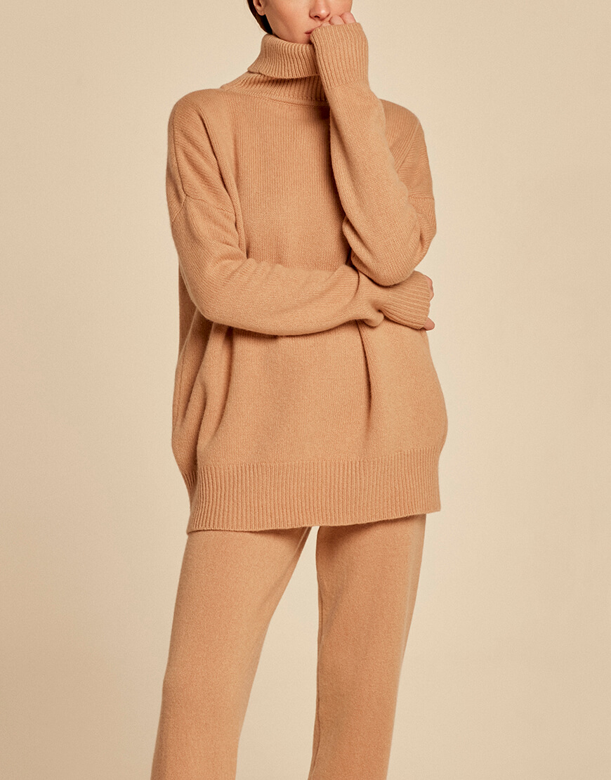Светр-водолазка невимушеного крою зі спущеними плечима, з гладкої в’язки. Затишний і м’який.
