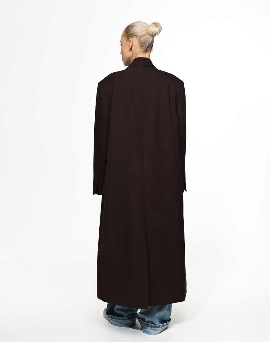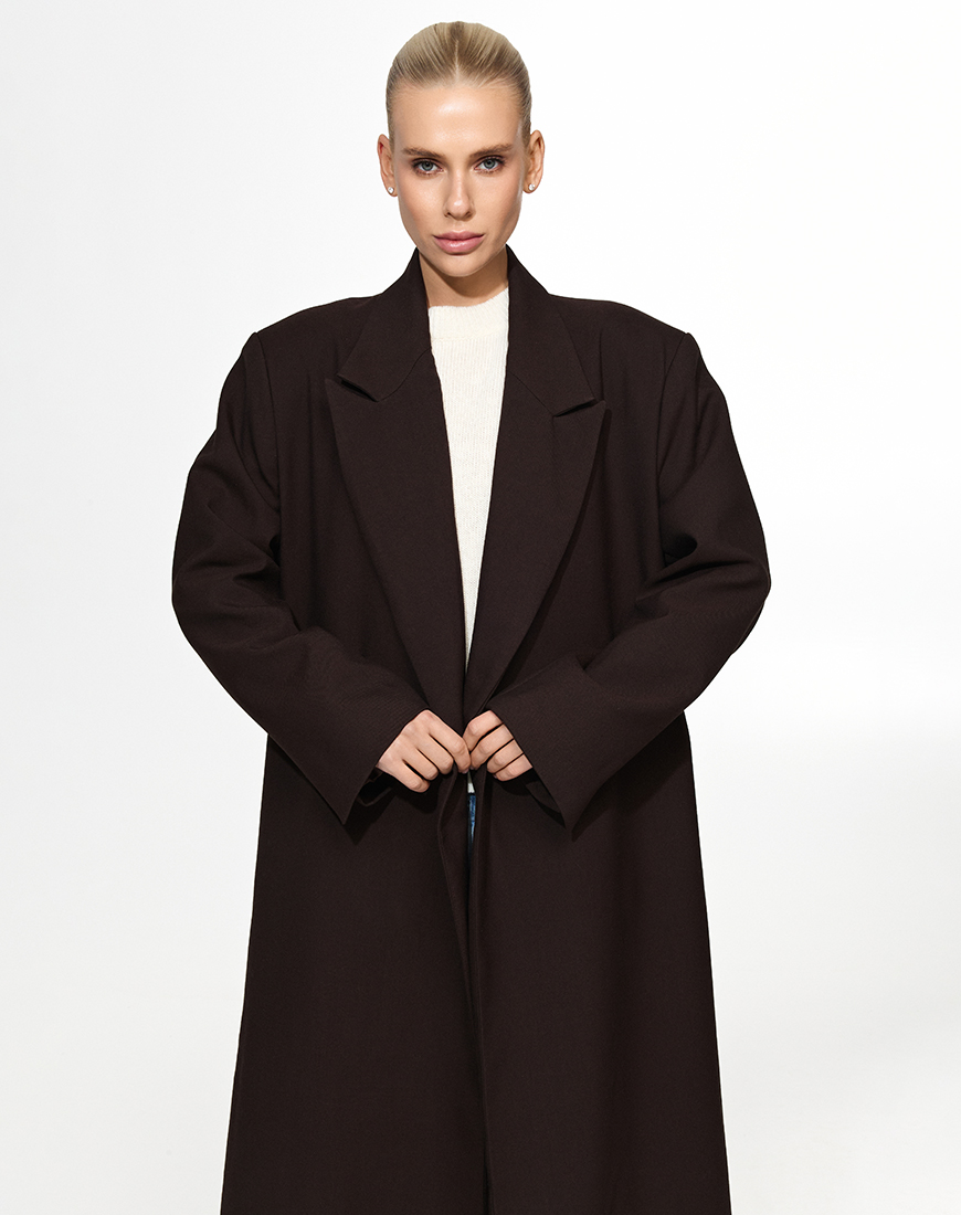 Доставка впродовж 5-7 робочих днівПальто прямого крою у шоколадному відтінку. Легко поєднується як з класичним образом, так і з повсякденним образом.
