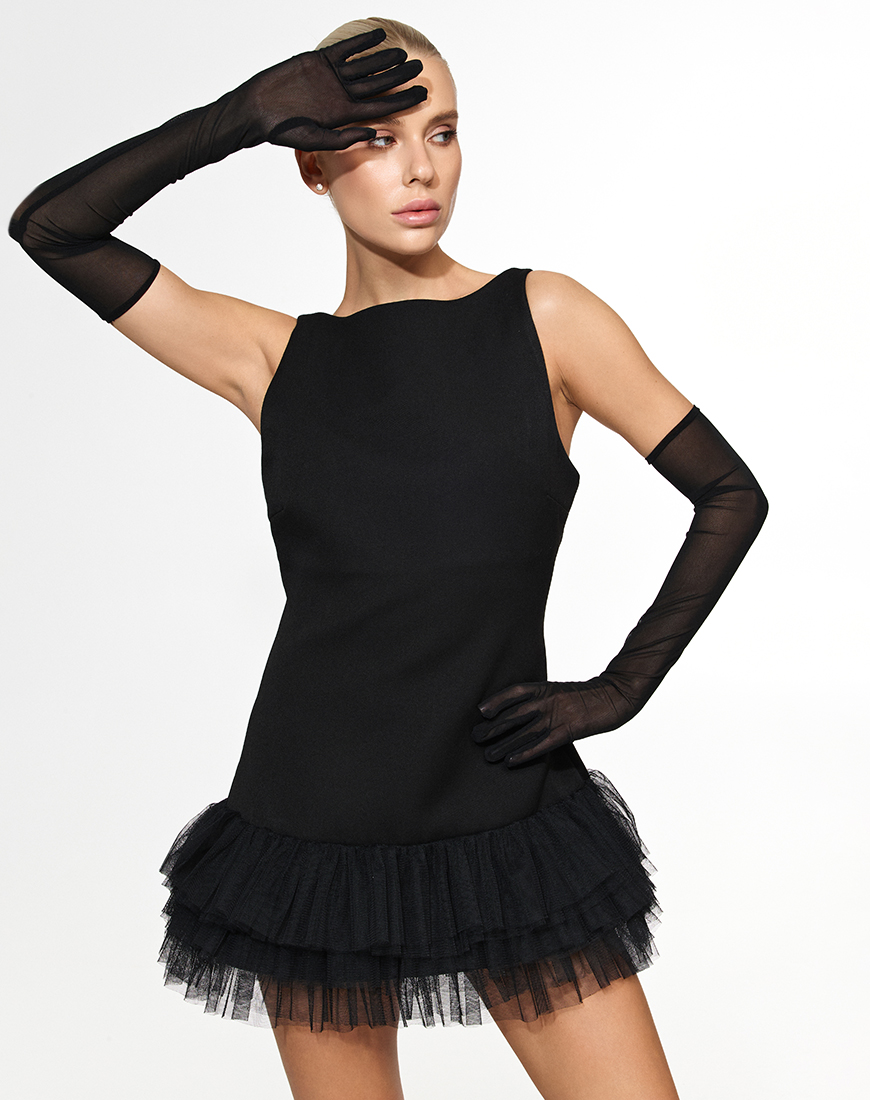 Доставка впродовж 5-7 робочих днівМіні-сукня чорного кольору з відкритою спиною, витончена та ефектна модель для особливих подій.