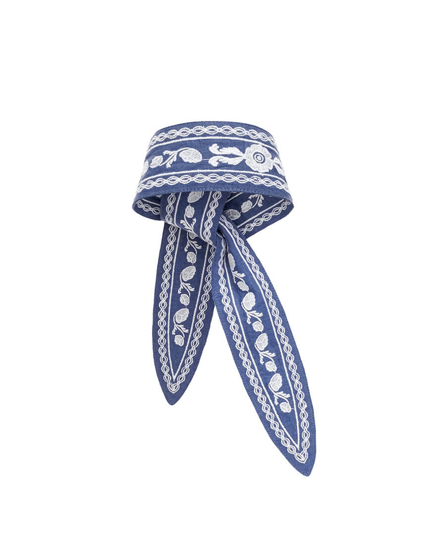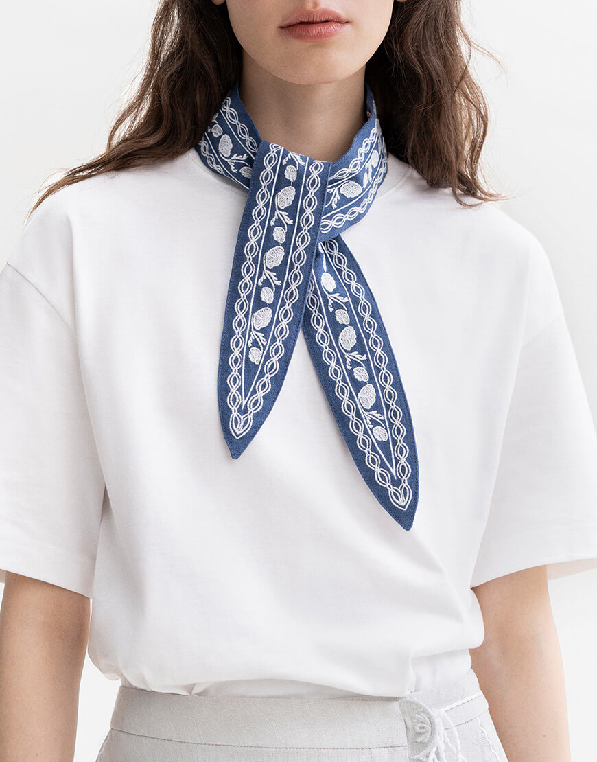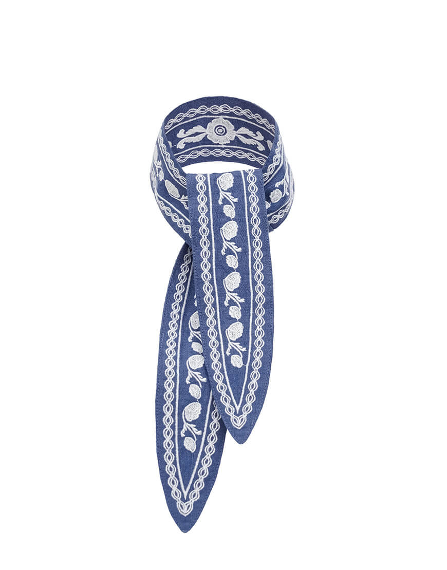 Лляна хустка блакитного кольору з білою вишивкою Дніпряна