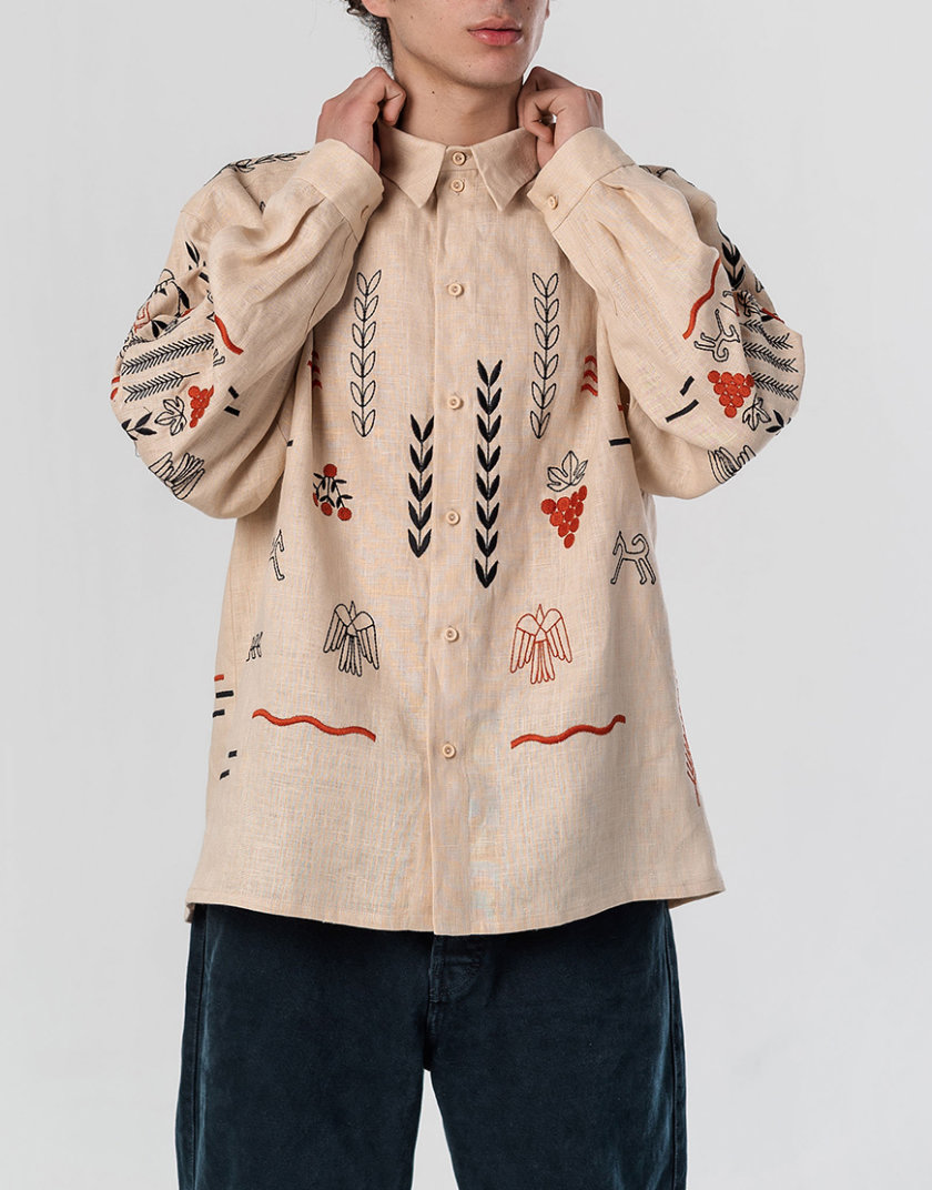 Лляна вишита сорочка бежевого кольору Men’s Slovo