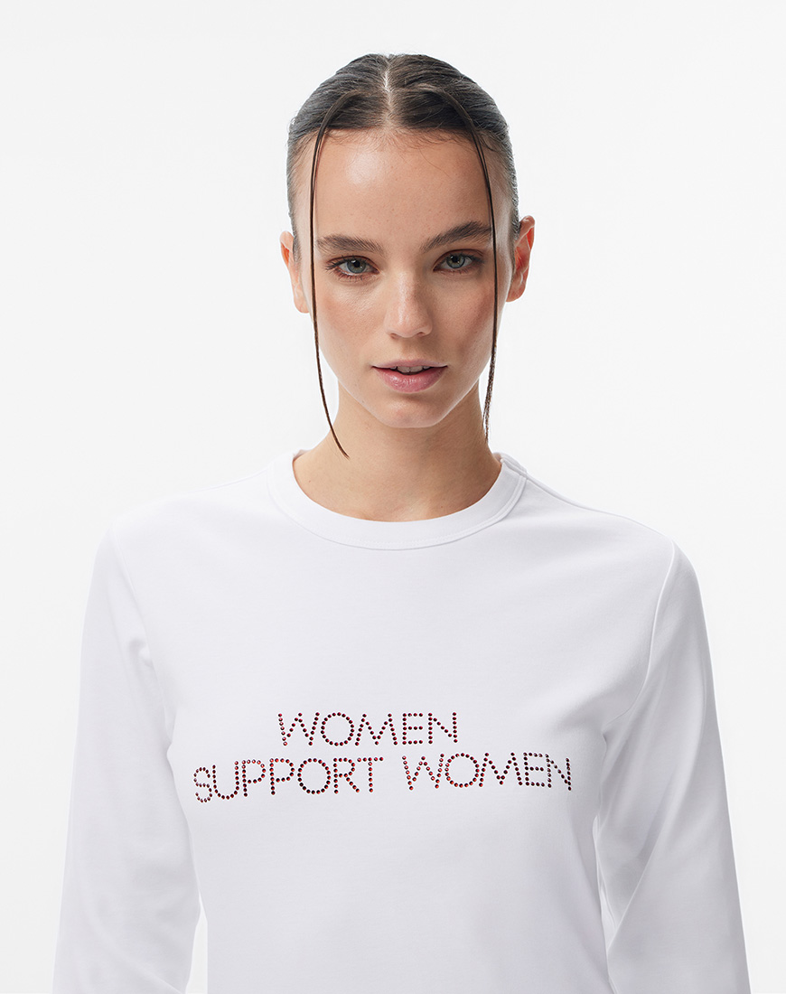 Доставка впродовж 2-5 робочих днівЦей лонгслів – маніфест жіночої сили та єдності. Виконаний з мʼякої бавовни, класичний круглий виріз. Надпис нанесений кристалами вручну