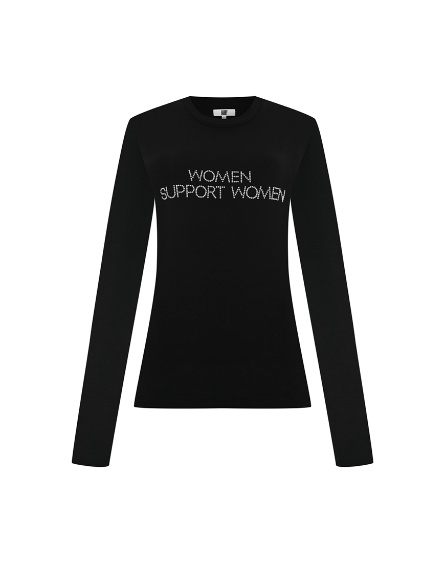 Цей лонгслів – маніфест жіночої сили та єдності. Виконаний з мʼякої бавовни, класичний круглий виріз. Надпис нанесений кристалами вручну