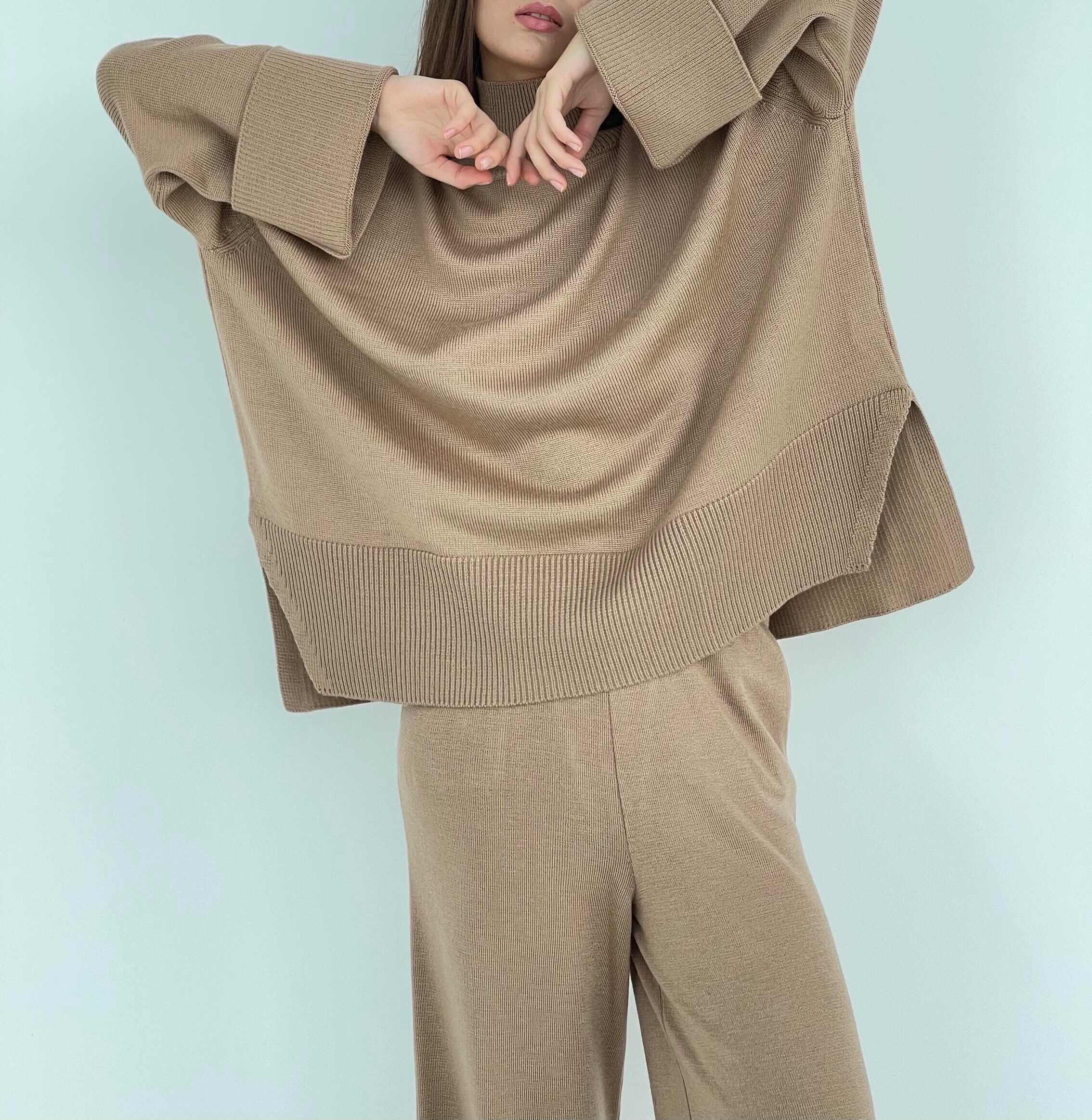 Об’ємний светр із розрізами та високими манжетами на рукавах. Розмір універсальний, підходить для XS, S, M і L.