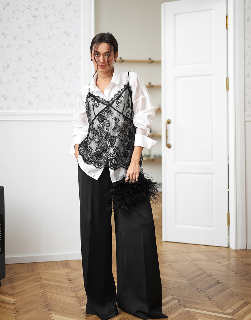 Доставка впродовж 2-5 робочих днівБрюки-палаццо середньої посадки з резинкою позаду на поясі для регулювання об’єму талії. З функціональними кишенями у бокових швах, із застібкою-блискавкою.