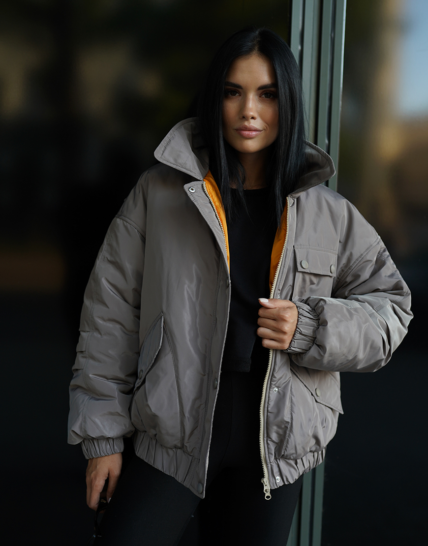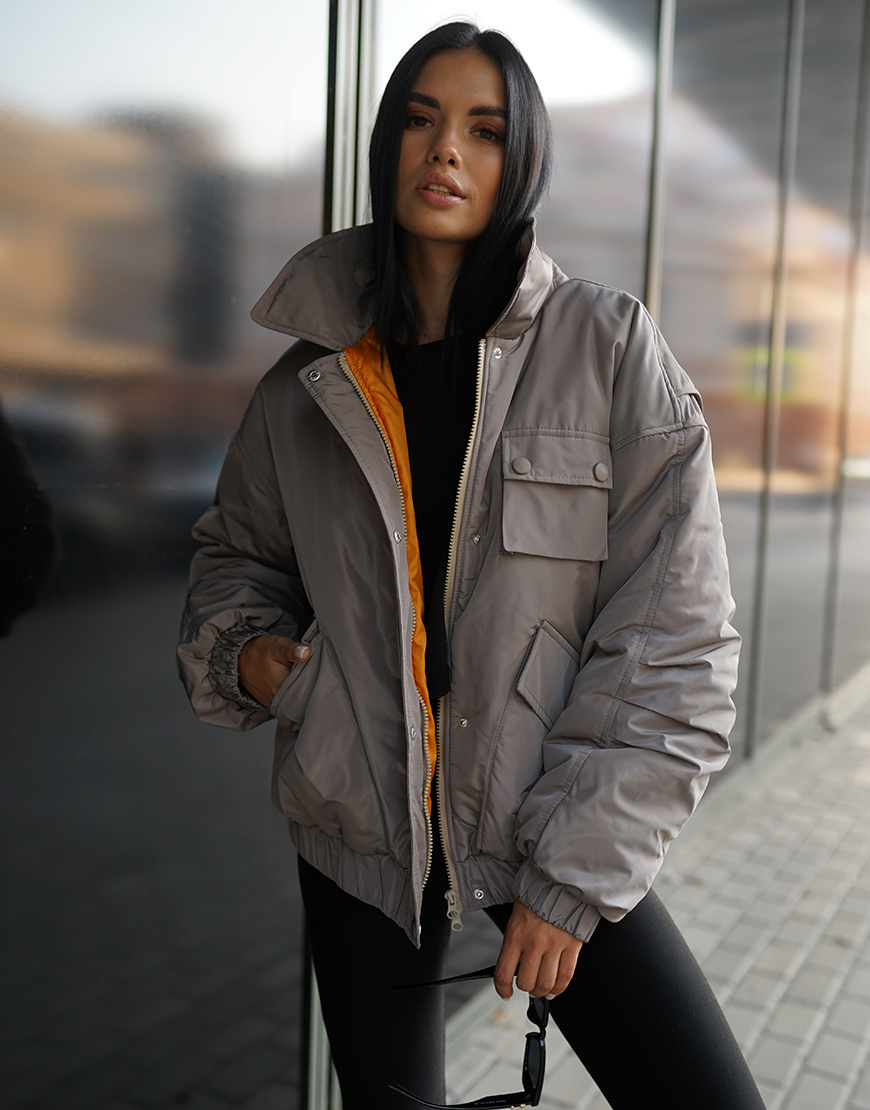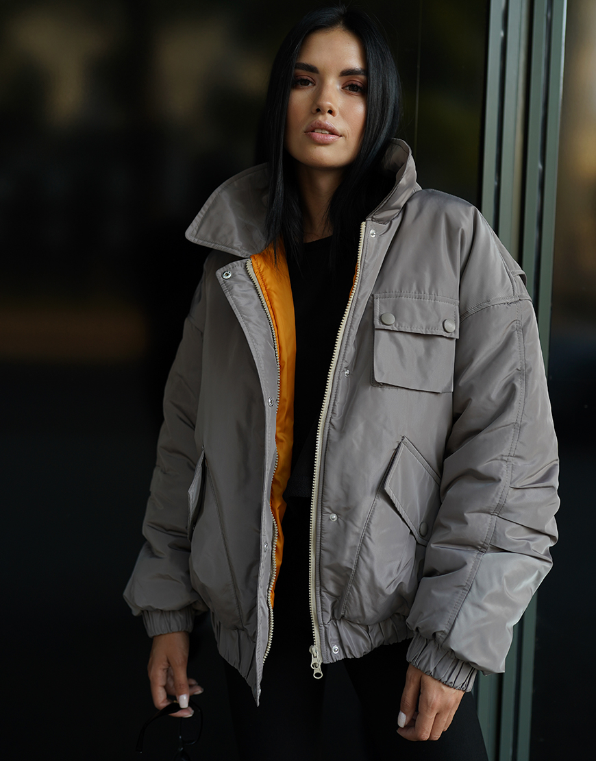 Доставка впродовж 2-5 робочих днівОб’ємна куртка оверсайз зі спущеним плечем, накладними функціональними кишенями та відкладним коміром. Розрахована на температуру до 0 градусів.