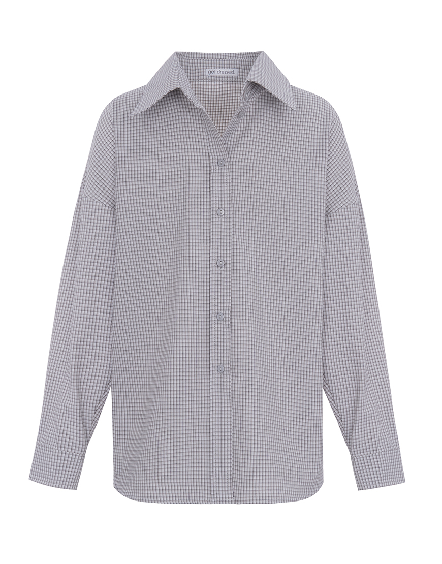 Доставка впродовж 2-5 робочих днівСорочка прямого крою over-size у дрібну клітинку з довгими рукавами
