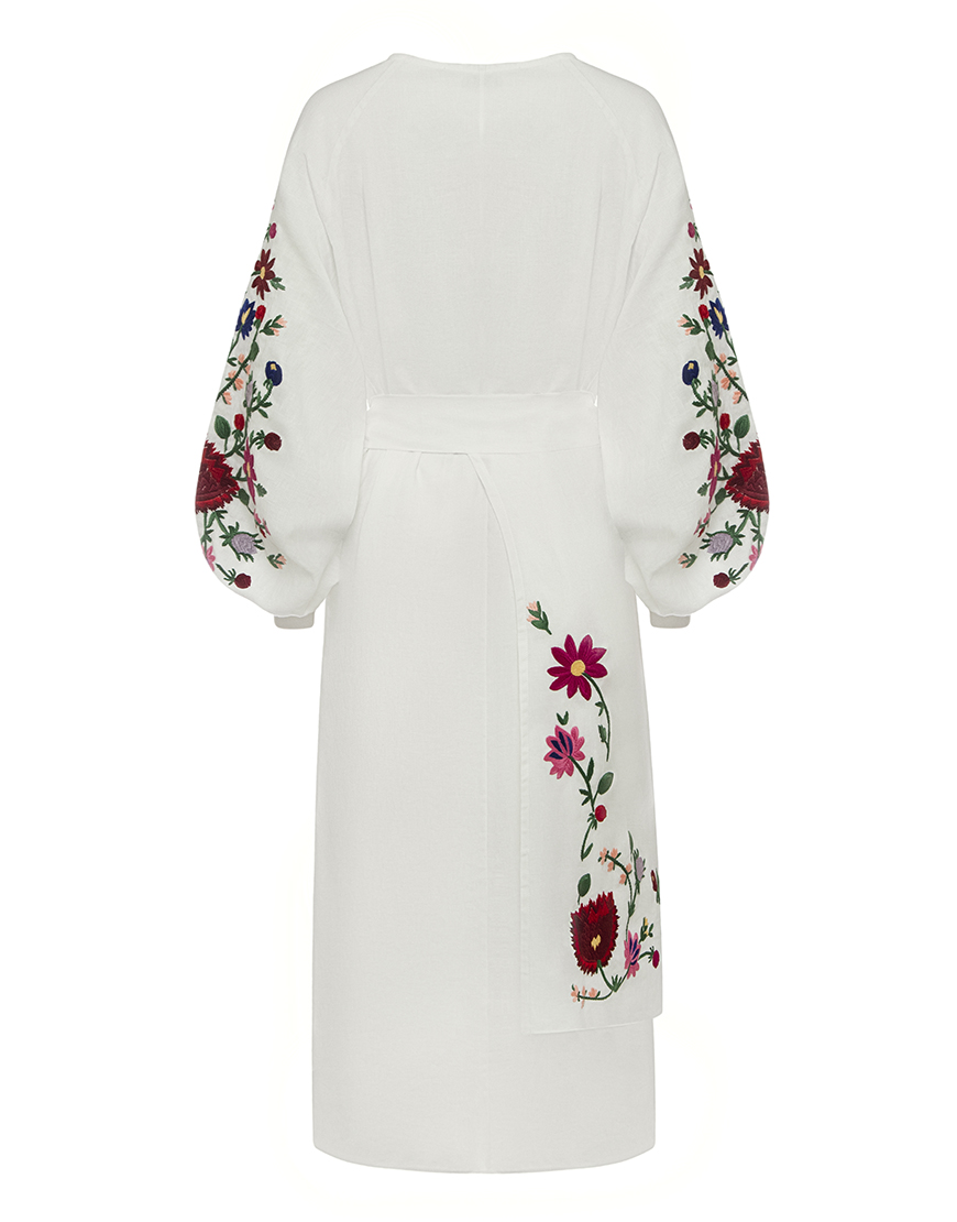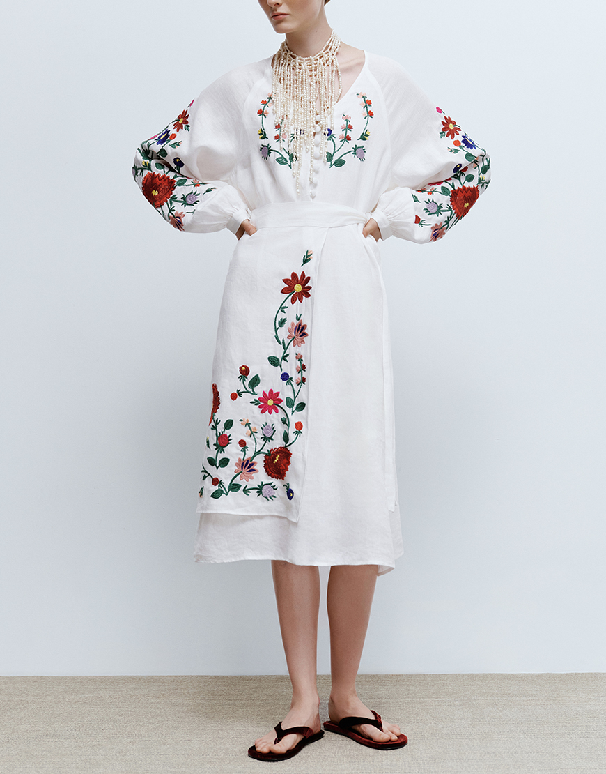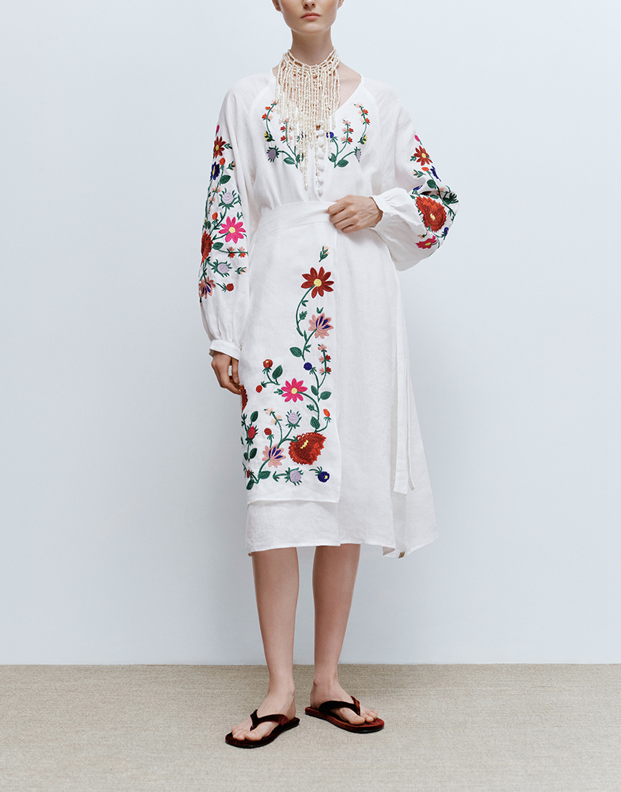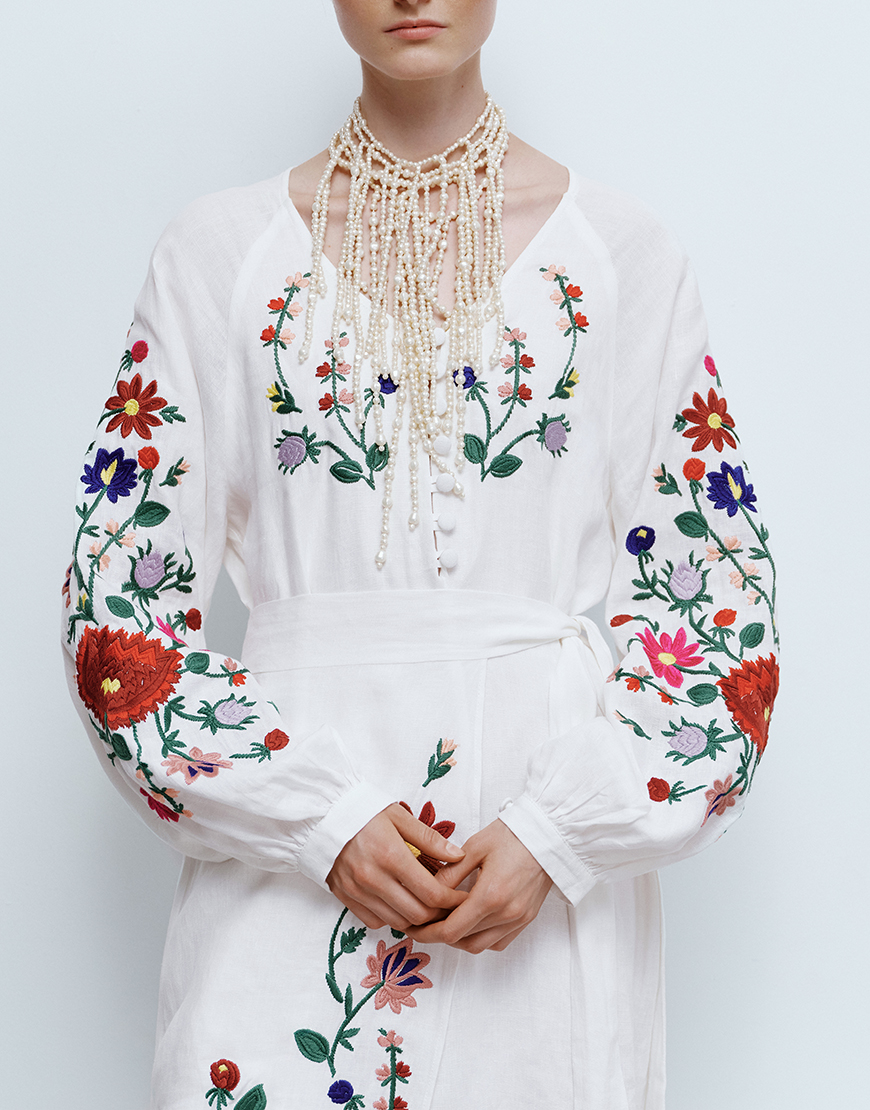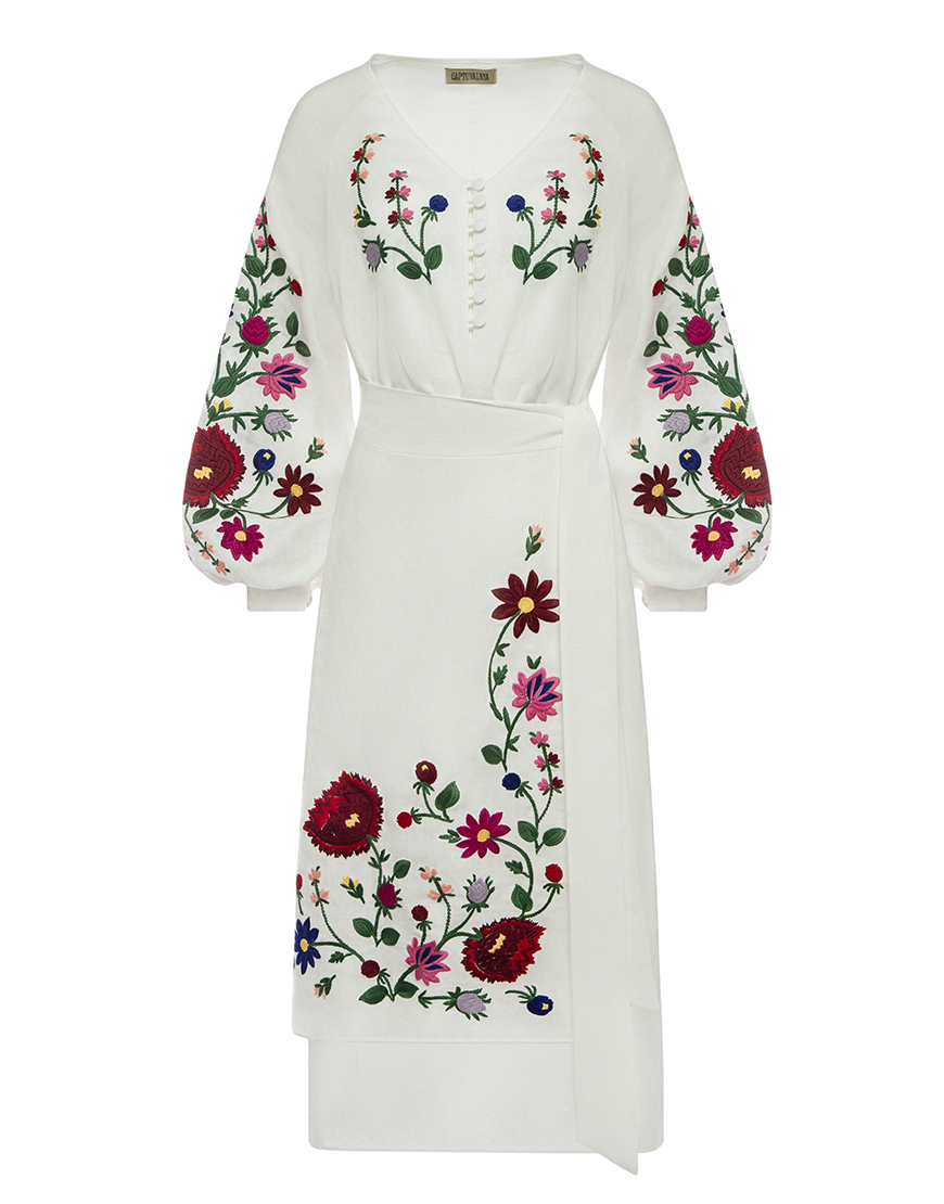 Сукня стилізована в стилі перепинки, або запаски: традиційно, цей елемент одягу вдягають другим шаром на сорочку чи плахту, а у виконанні Gaptuvalnya це повноцінний образ.