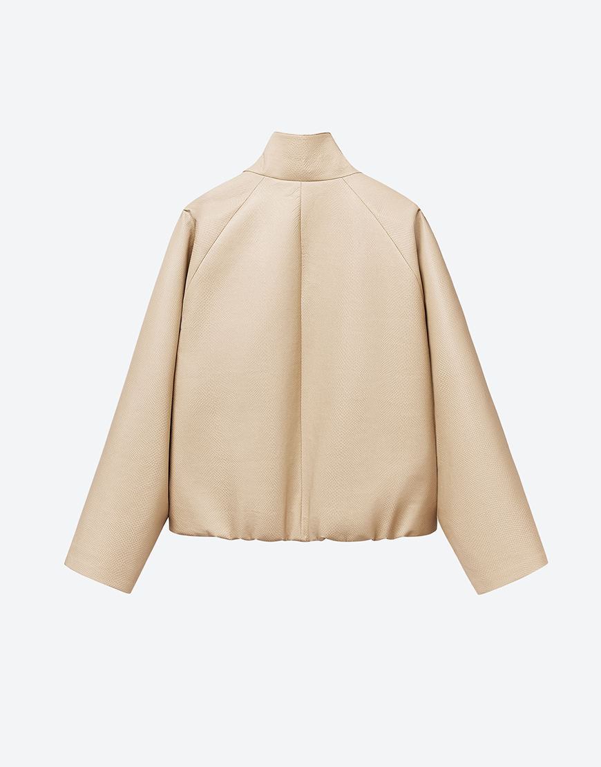 Доставка впродовж 5-7 робочих днівБомбер із м’якої еко шкіри преміум класу з зернистою фактурою. Модель має прямий, злегка укорочений крій, спущену лінію плеча й мінімалістичну застібку на ґудзиках. Високий комір-стійка додає виразності, а колір вершкового масла робить річ універсальною — вона легко вписується і в базові образи, і в складні стилізації. Поєднується з денімом, костюмними штанами, спідницями чи шовковими сукнями — і завжди має актуальний вигляд.