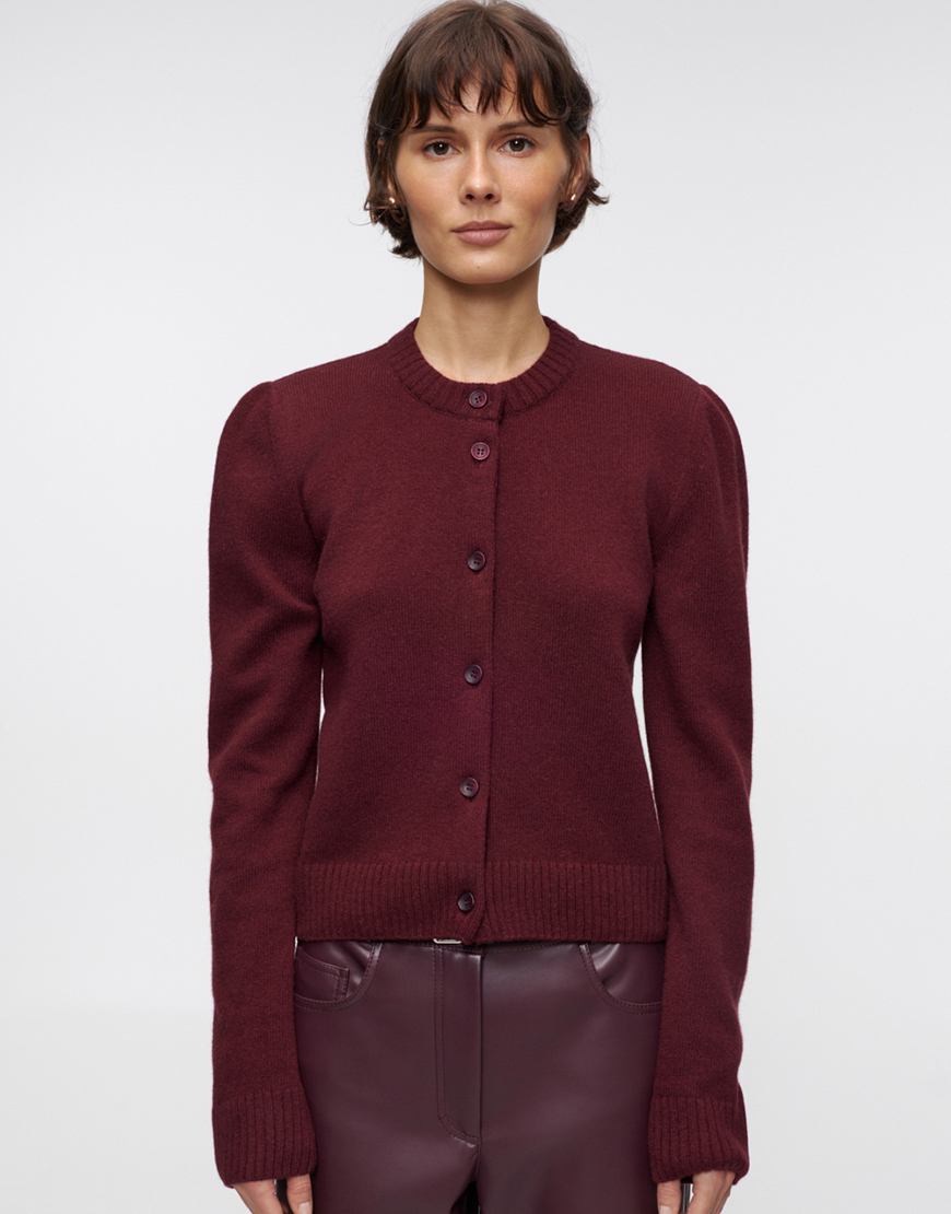 Доставка впродовж 5-7 робочих днівКласичний кардиган у насиченому бордовому кольорі з круглим вирізом. Застібається на гудзики. М’яка та тепла модель для створення елегантних повсякденних образів.