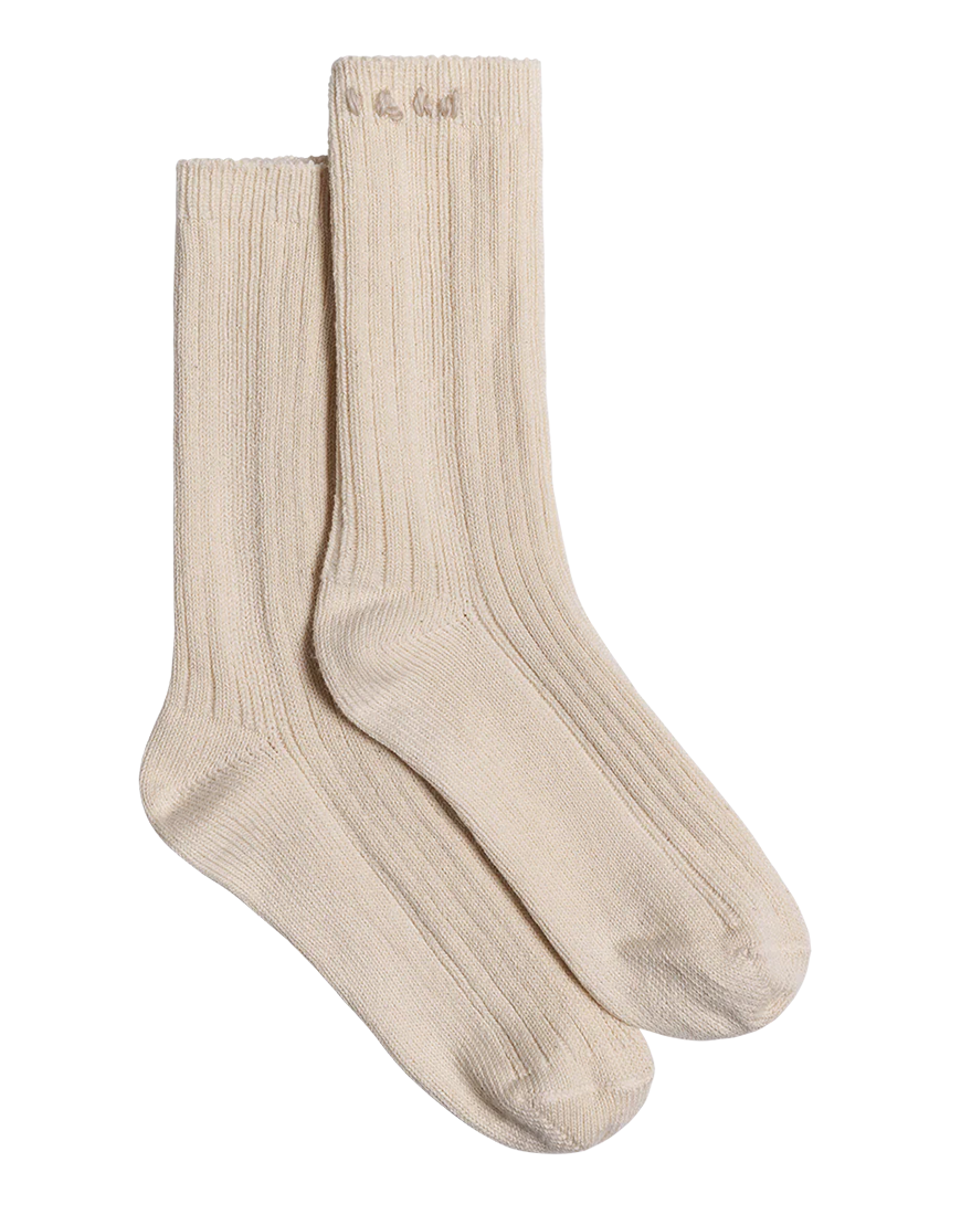 Доставка впродовж 5-7 робочих днівШкарпетки в молочному кольорі з бавовни, вовни та еластану. Оздоблені декоративним стібком ручної роботи. Комфортні та приємні до тіла.