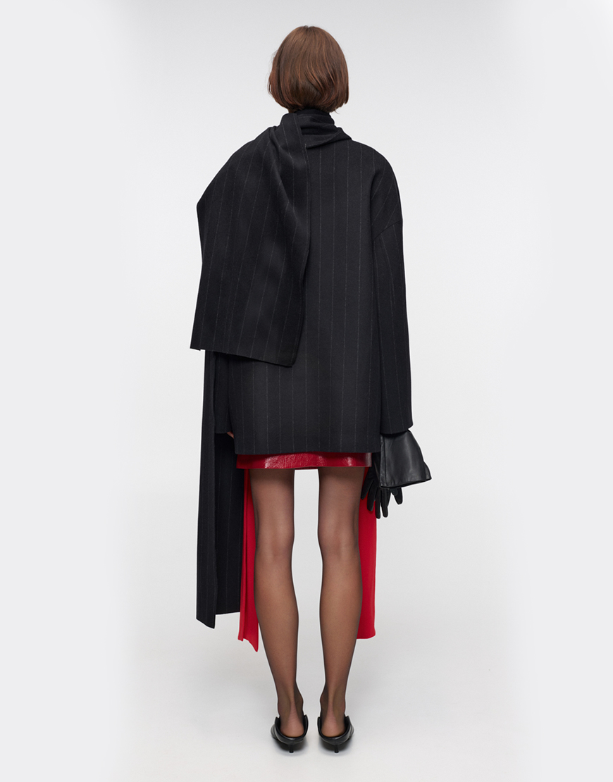 Доставка впродовж 5-7 робочих днівЕлегантне пальто прямого крою з трендовою смужкою та акцентом у вигляді шарфу. Застібка на кнопки, шарф фіксується однією кнопкою. Має дві бічні кишені для додаткового комфорту. Універсальна модель для створення витончених образів у прохолодний сезон.
