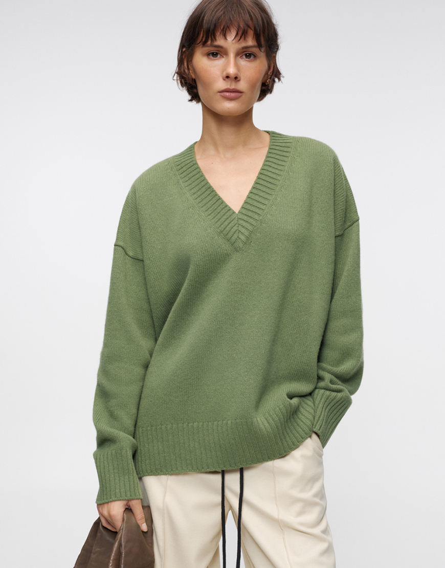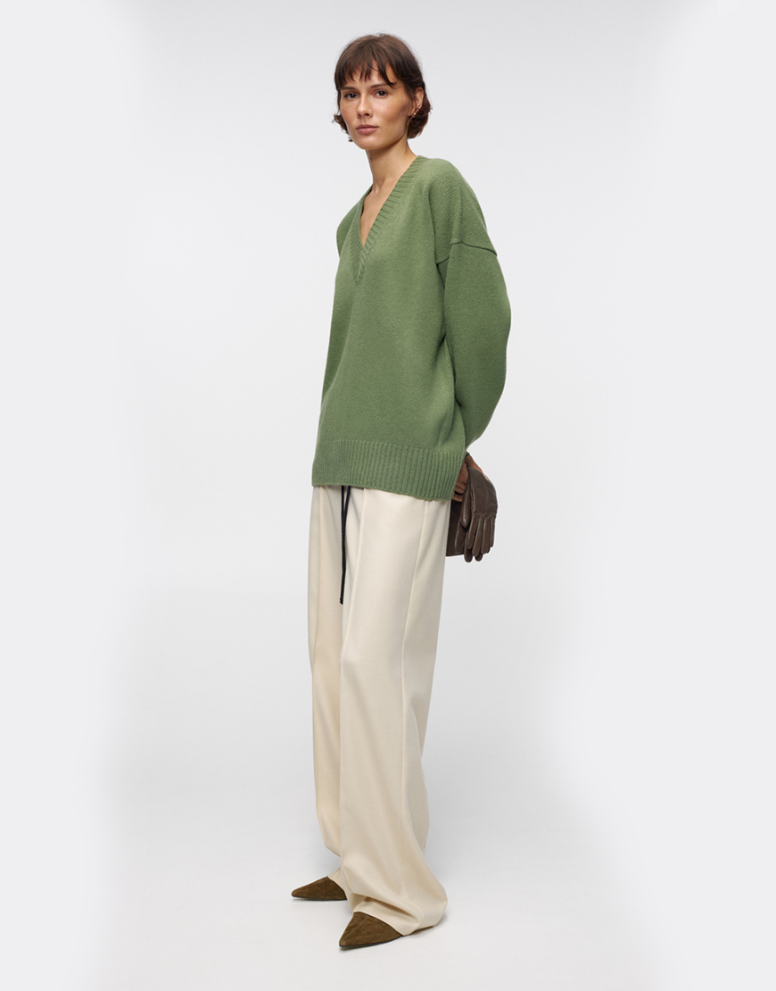 Доставка впродовж 5-7 робочих днівЗатишний оверсайз светр з V-подібним вирізом насиченого зеленого кольору. М’яка та тепла модель вільного крою для створення комфортних повсякденних образів. Ідеально поєднується з брюками та спідницями.
