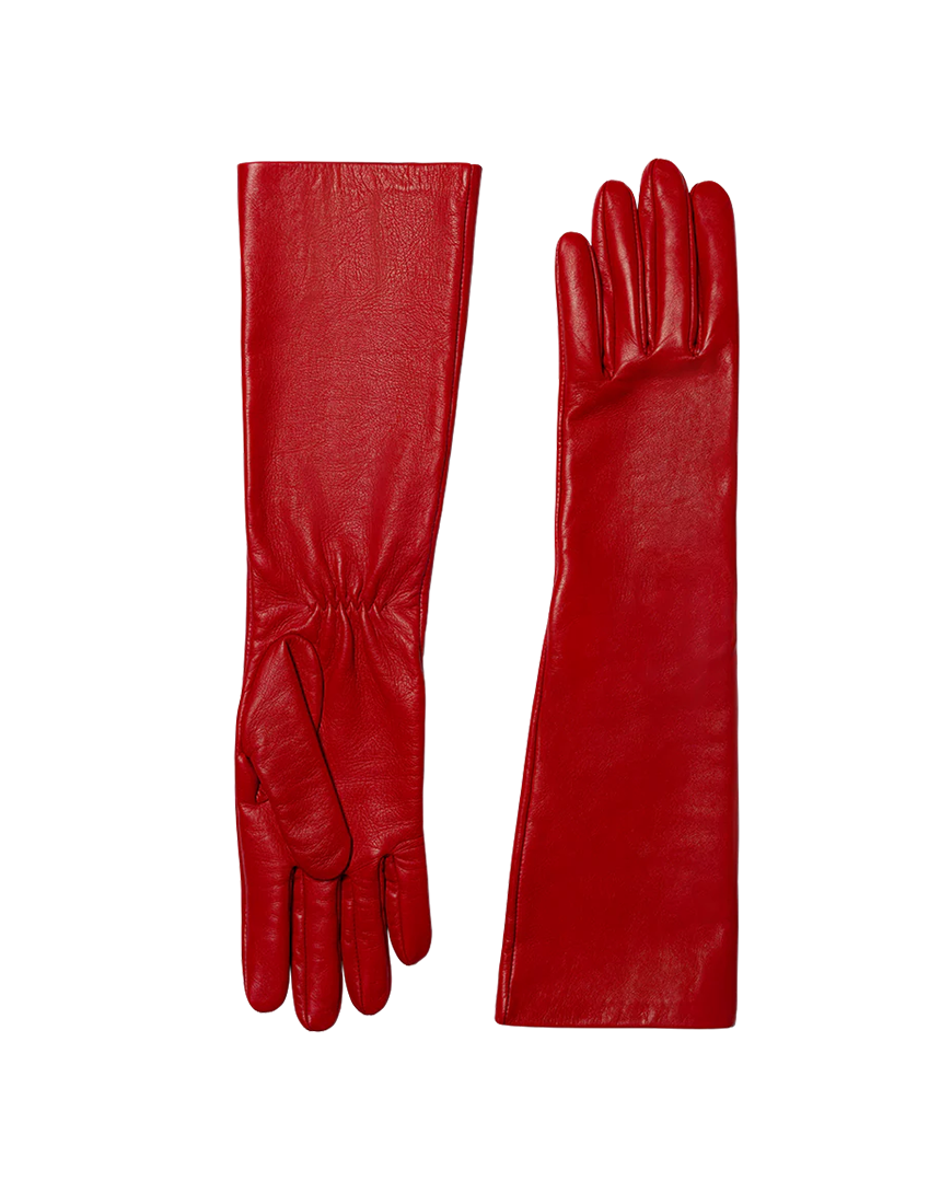 Доставка впродовж 5-7 робочих днівДовгі рукавиці з натуральної шкіри насиченого червоного кольору. Стильний аксесуар, який стане яскравим доповненням ваших образів.