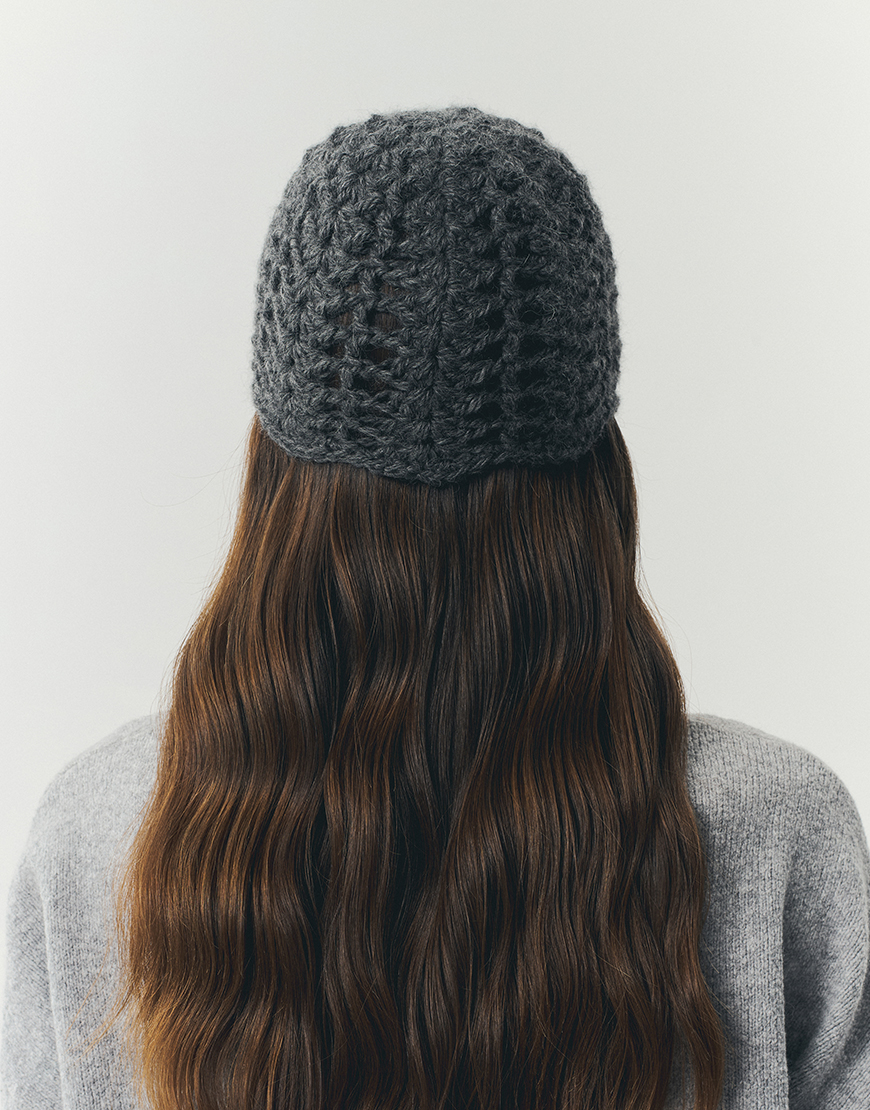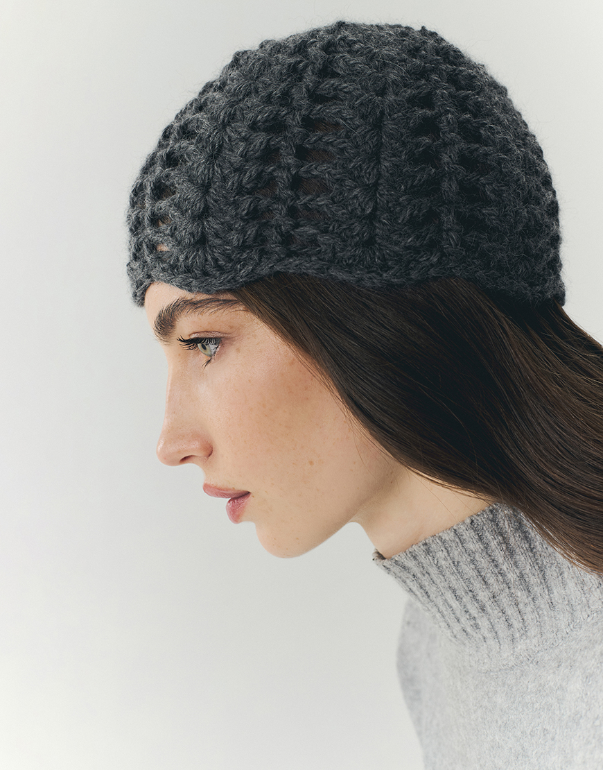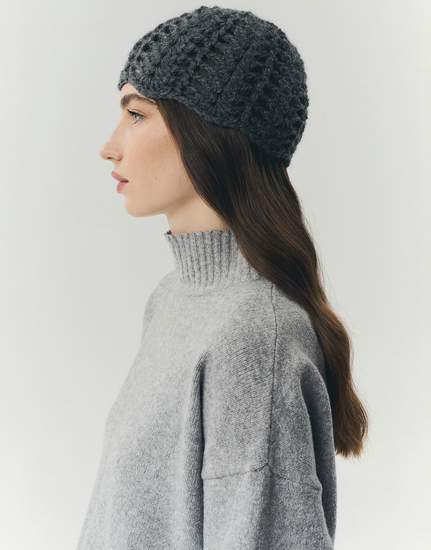 Шапка кроше з альпаки сіра