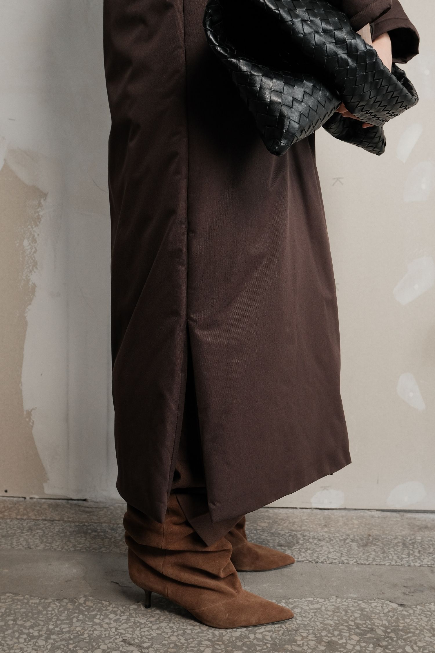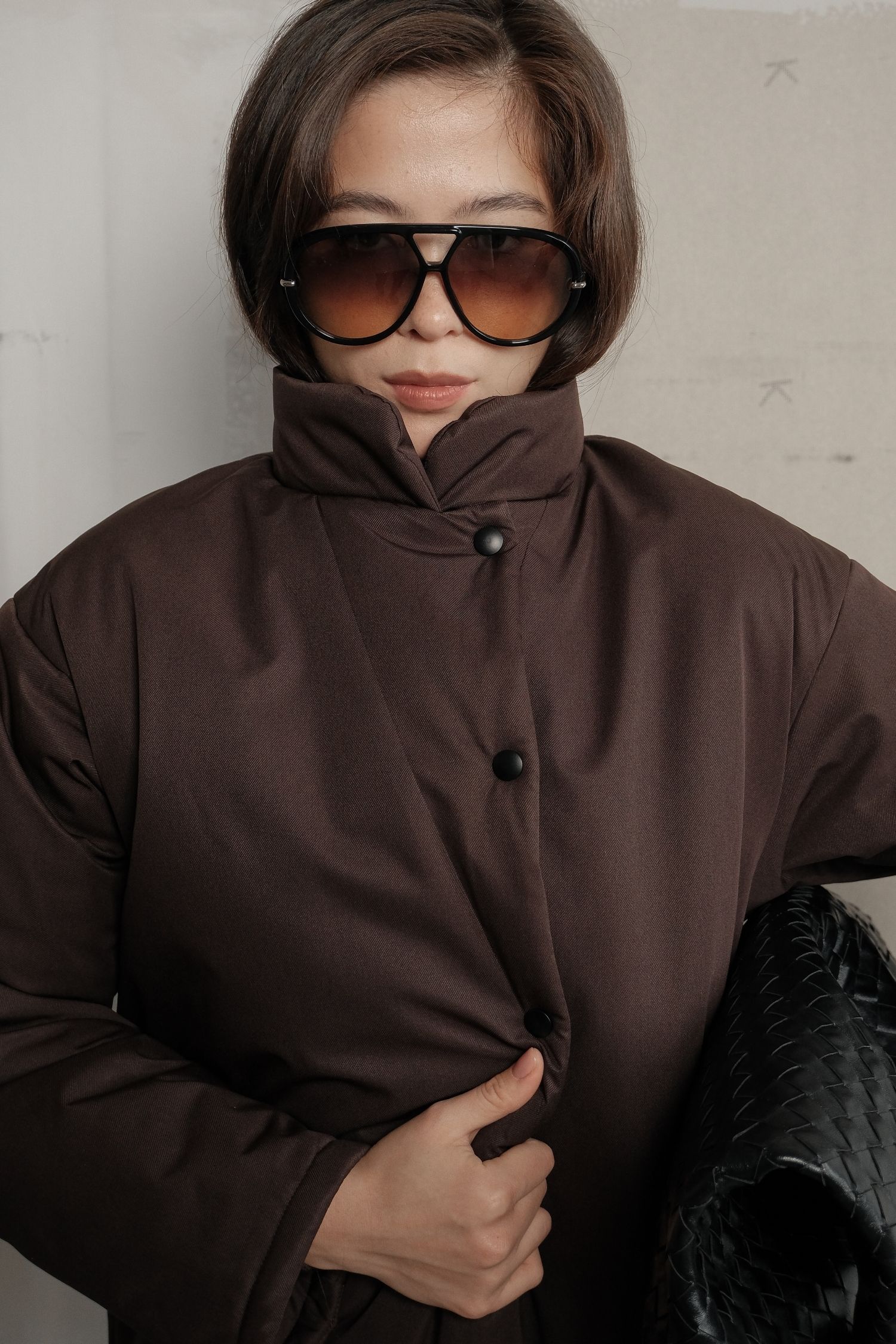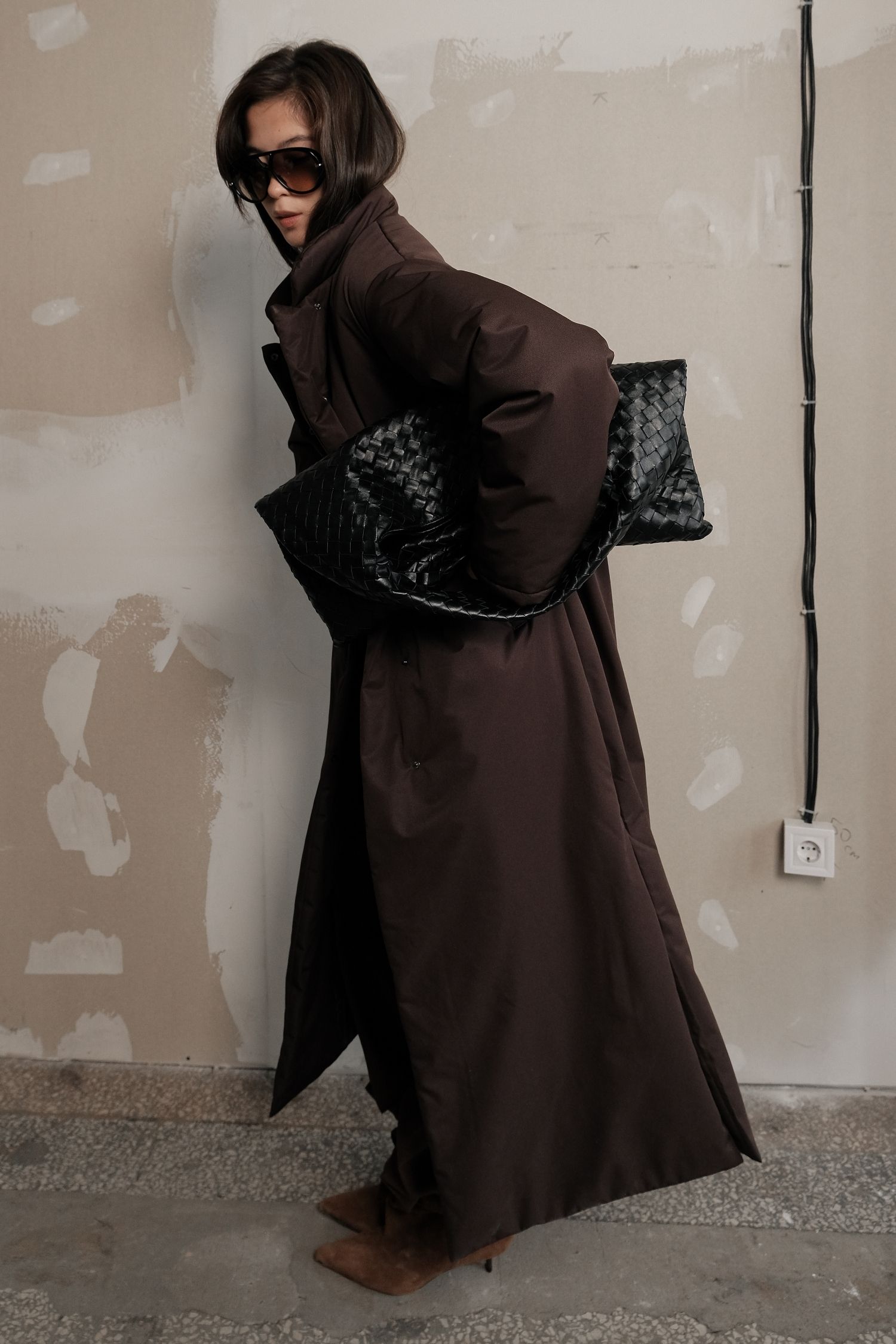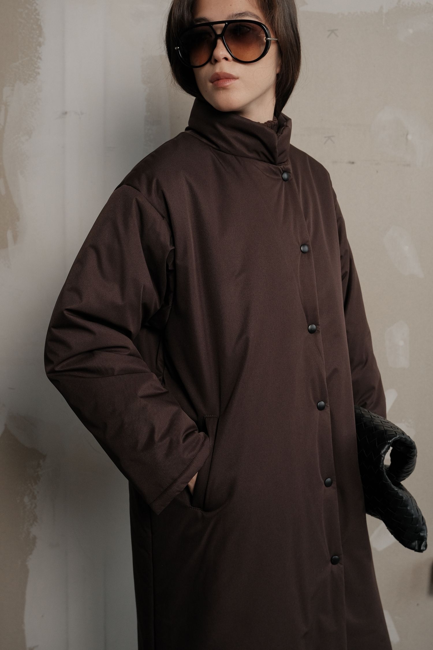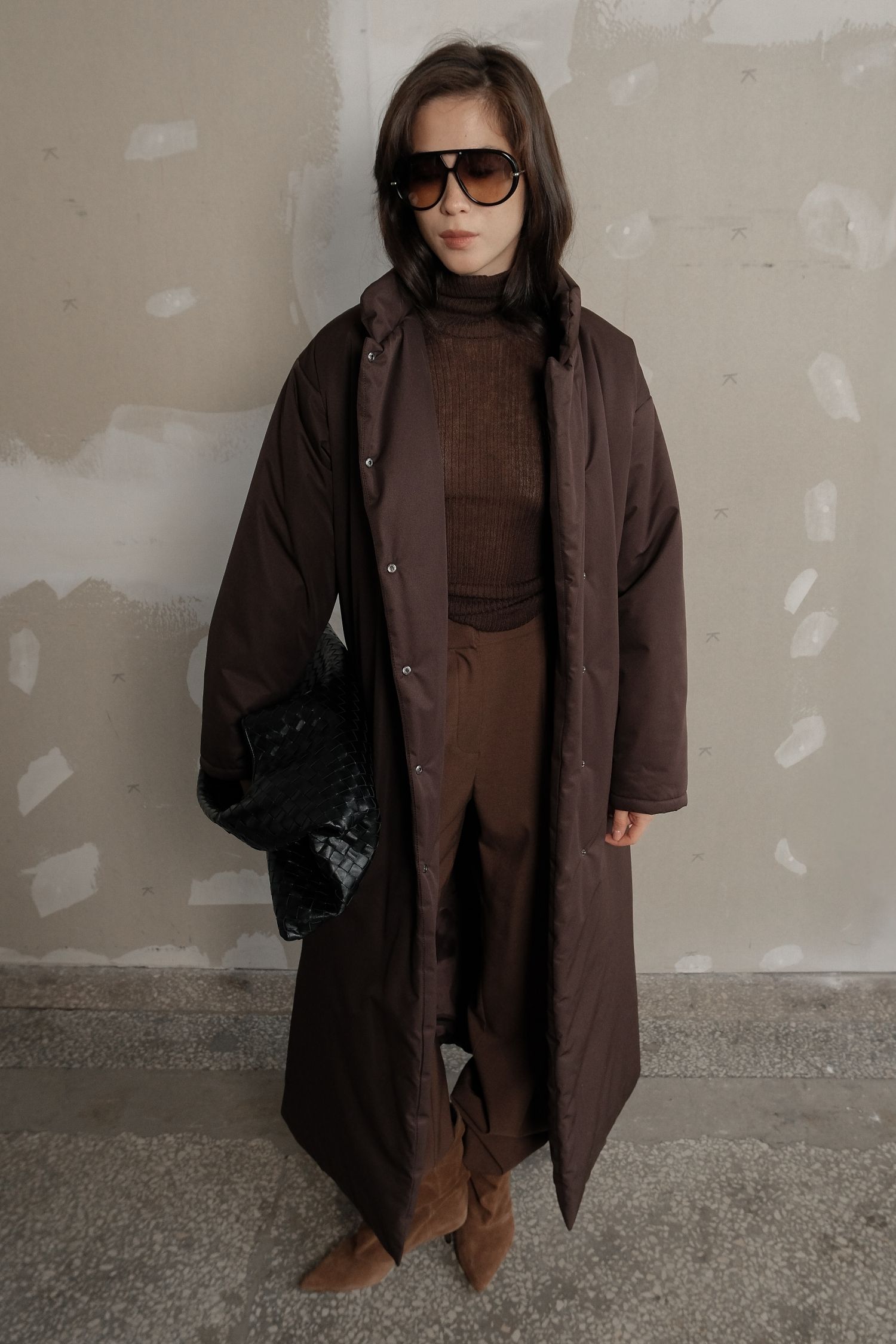 ДоставкаКуртка максі шоколадного відтінку з мінімалістичним кроєм і просторою посадкою. Вона щільно огортає тіло й добре зберігає тепло. Застібається на зручні кнопки і оснащена високим коміром, що захищає від холоду. У комплекті є пояс, який можна використовувати за бажанням. Глибокий стриманий колір підходить і для щоденних прогулянок, і для більш елегантних зимових образів.