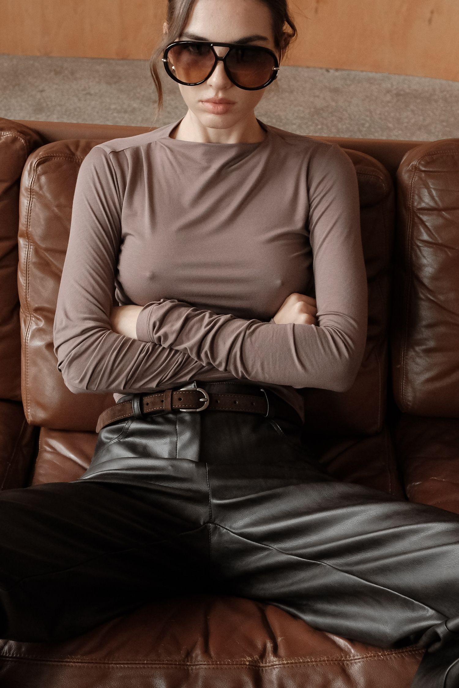 ДоставкаЖіночий лонгслів у відтінку капучино, виконаний із легкого віскозного трикотажу.