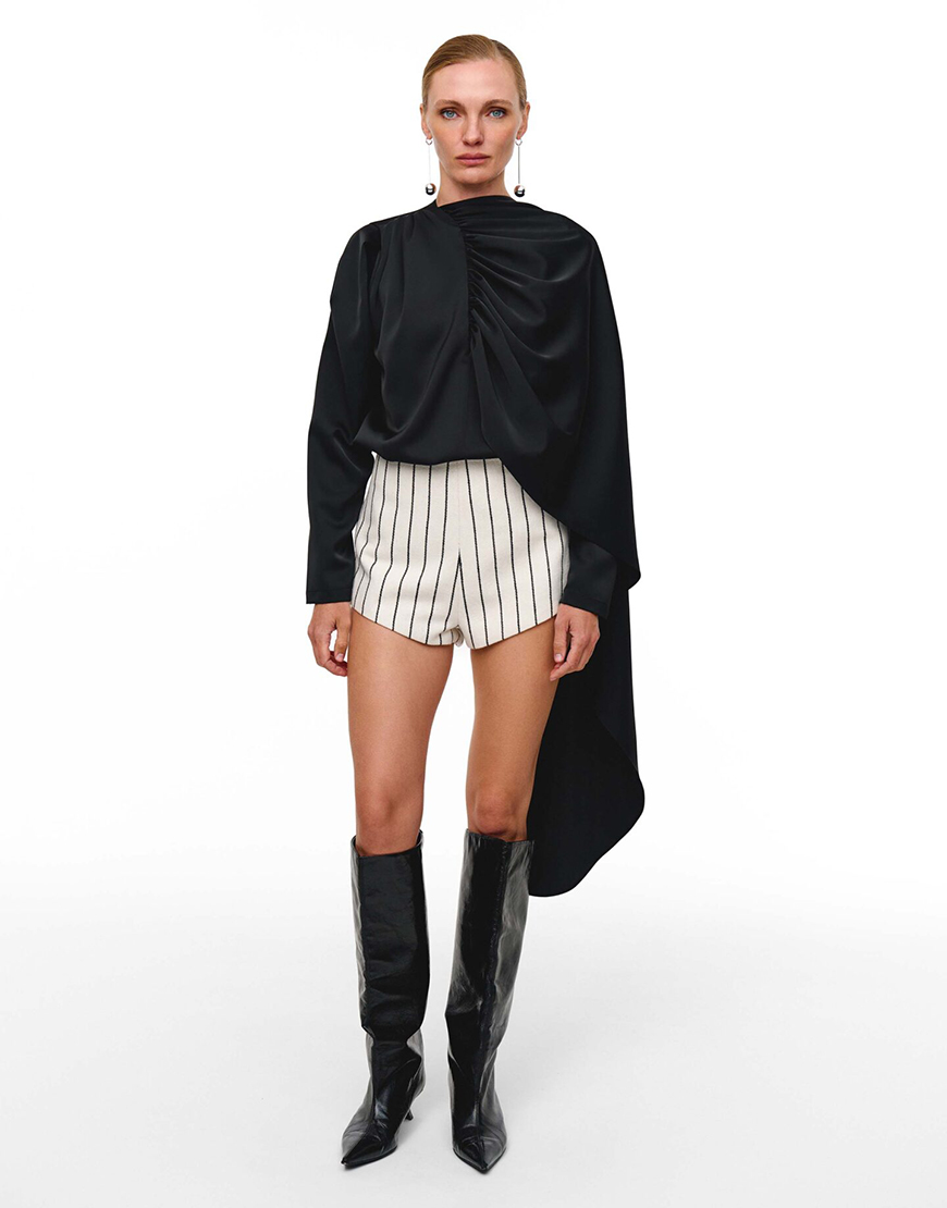 Доставка від 14 днівШорти із високою лінією талії. Застібається спереду на блискавку. Шорти виконані з щільної тканини на підкладці.