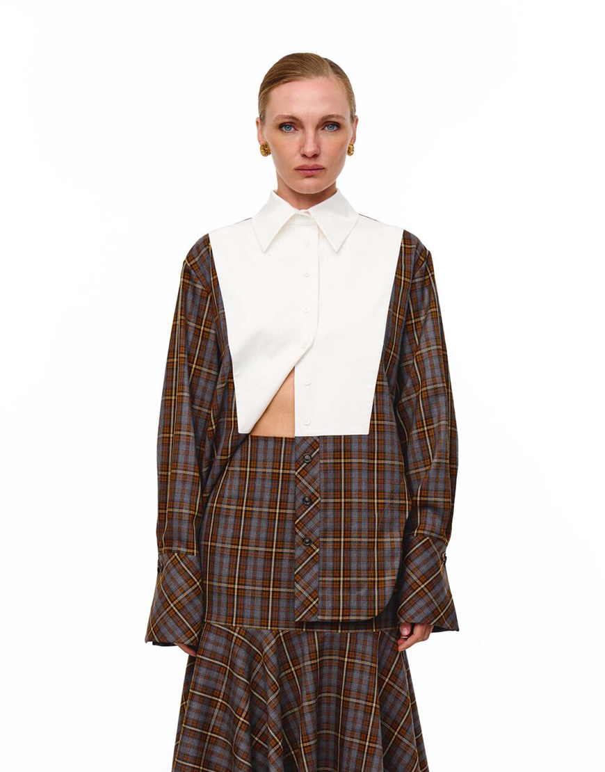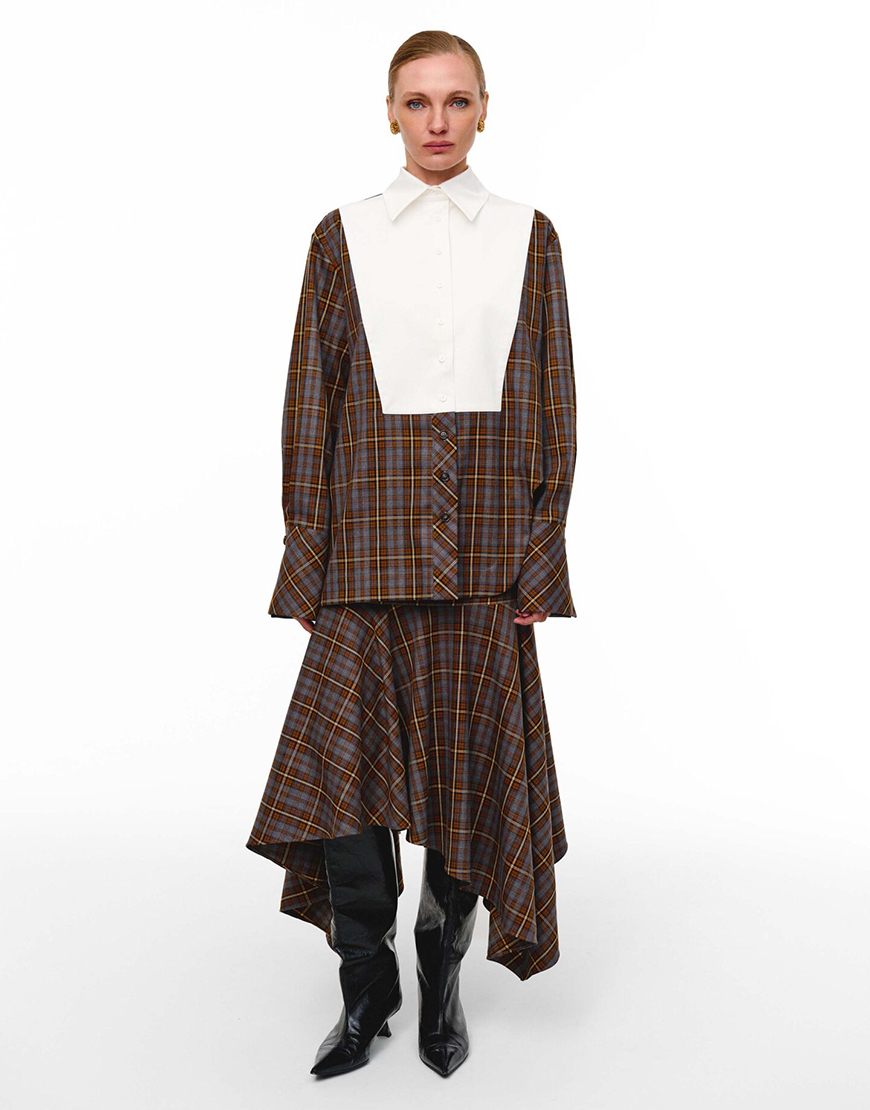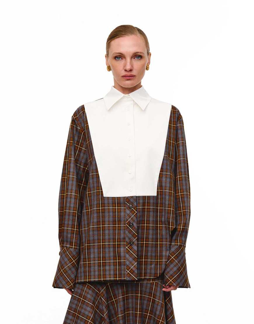 Доставка впродовж 2-10 робочих днівСорочка вільного крою, оздоблена манішкою і застібається на гудзики. Має широкі манжети. Сорочка представлена з асиметричним вирізом збоку. Преміальна технологія виконання з усіма закритими швами.
