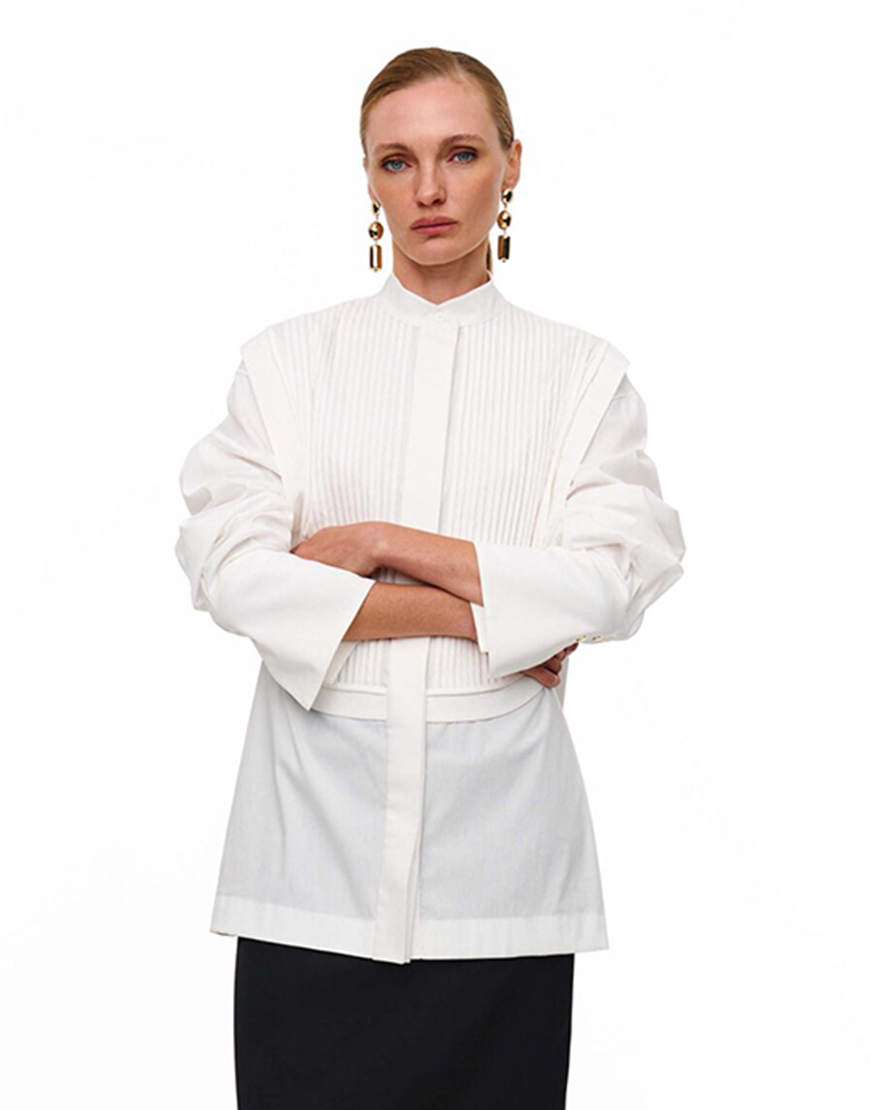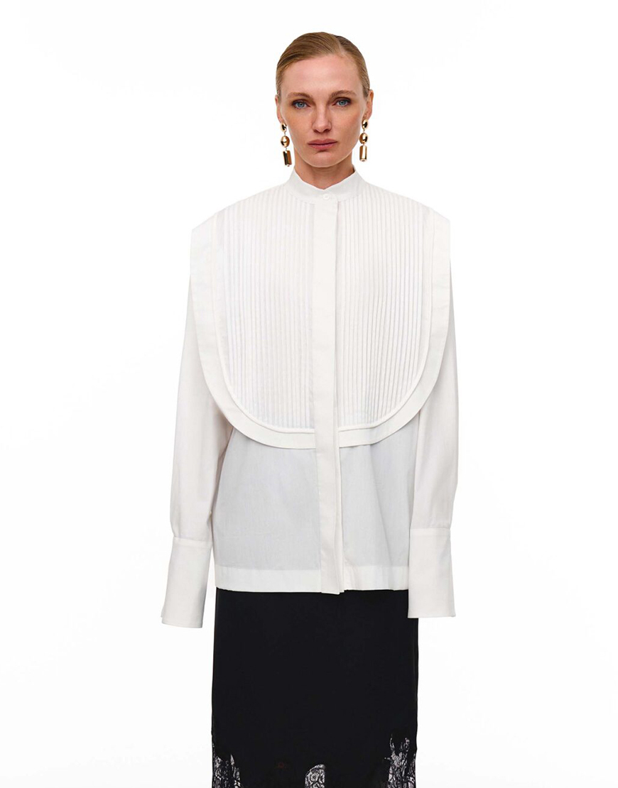Доставка впродовж 2-10 робочих днівСорочка вільного крою, оздоблена манішкою і застібається на гудзики. Манішка оздоблена дрібними складками ручної роботи. Має широкі манжети. Преміальна технологія виконання з усіма закритими швами.