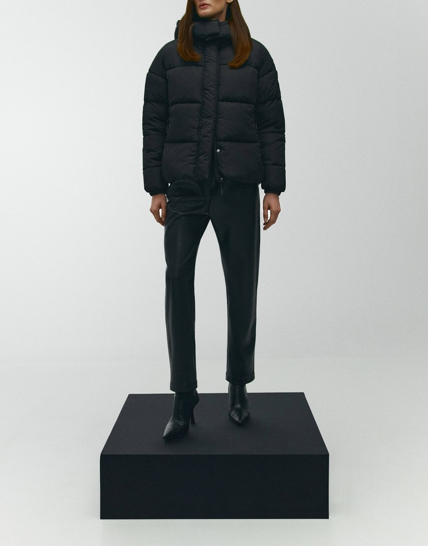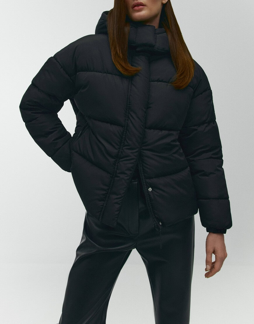 Об’ємний пуховик, виконаний з щільної плащової тканини з водо- та вітровідштовхуючими властивостями. Пуховик наповнений 100% еко-пухом, що витримує температуру до -25 градусів. Пуховик виконано у 2 суміжних розмірах: XS-S, M-L.
