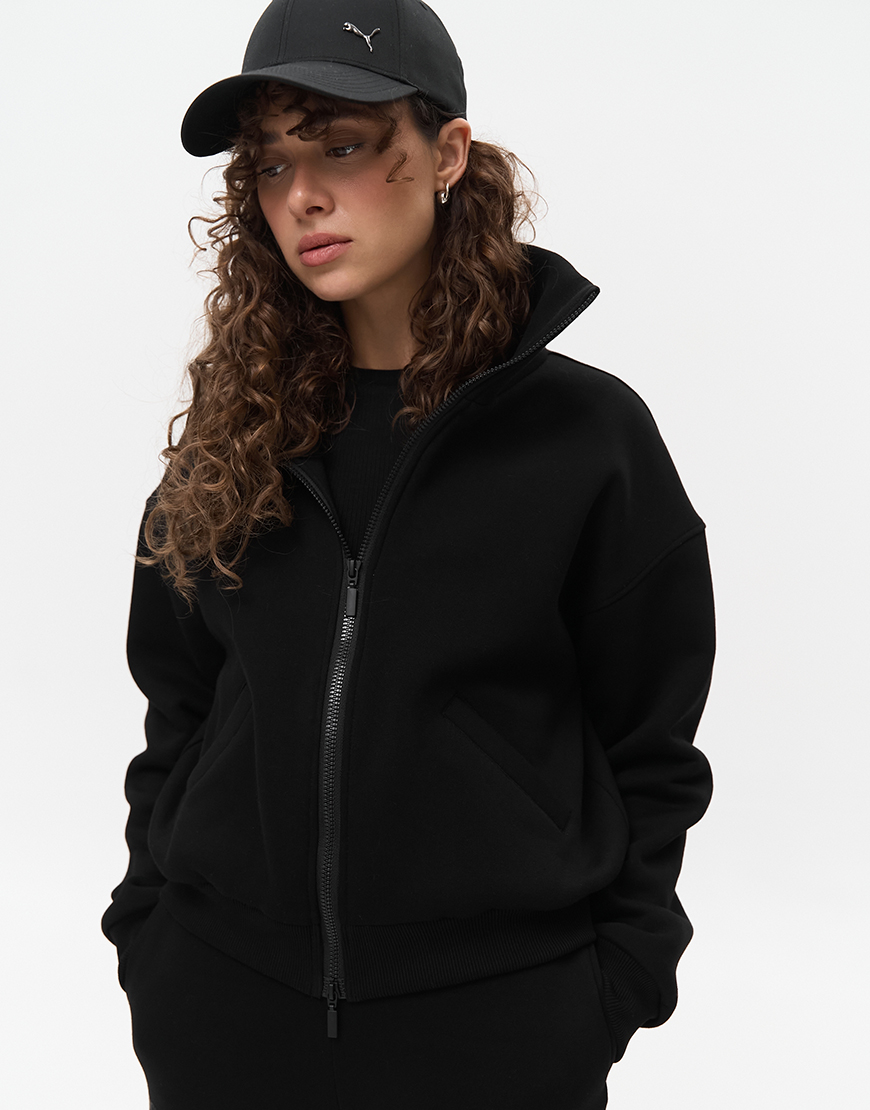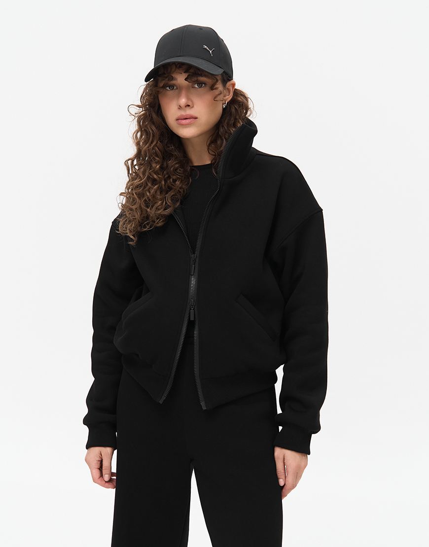 Стильний бомбер для прохолодної погоди. Має зручну застібку на блискавку, функціональні кишені та коротку посадку, що створює сучасний силует. Комір-стійка захищає від вітру, а м’яка підкладка з куліру додає комфорту під час носіння. Лаконічне лого на спинці завершує образ.