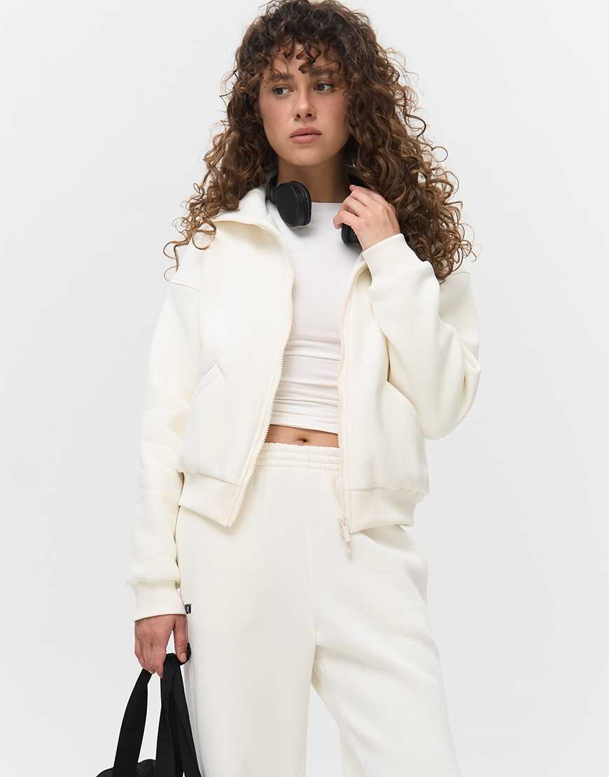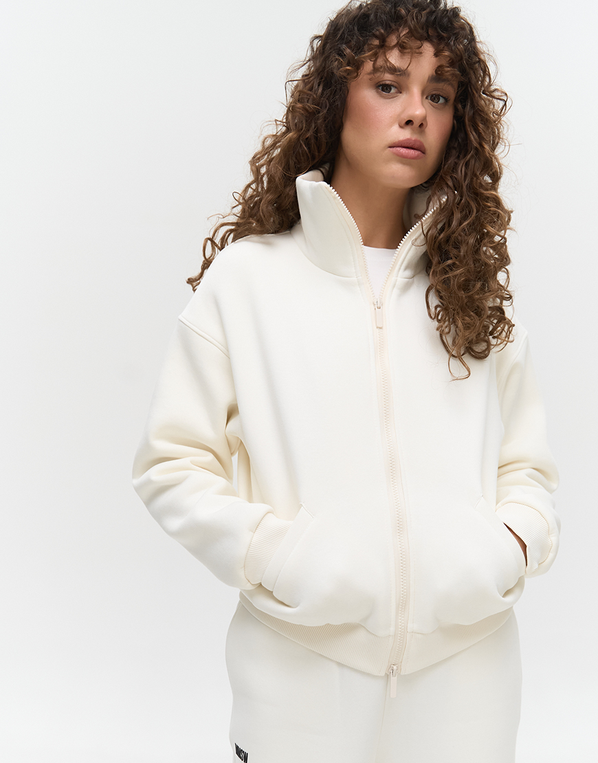 Стильний бомбер для прохолодної погоди. Має зручну застібку на блискавку, функціональні кишені та коротку посадку, що створює сучасний силует. Комір-стійка захищає від вітру, а м’яка підкладка з куліру додає комфорту під час носіння. Лаконічне лого на спинці завершує образ.