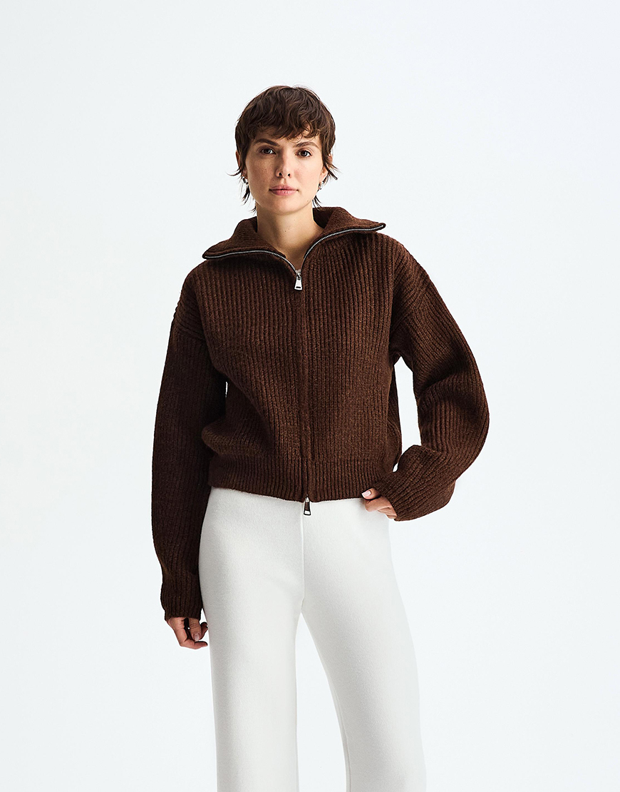М’яка фактурна в’язка огортає, але не обтяжує. Високий комір додає відчуття захищеності та комфорту, коли хочеться трохи тиші серед руху міста.