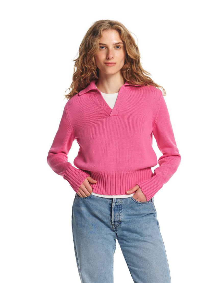 Доставка впродовж 1-2 робочих днівВкорочений джемпер-поло з натуральної бавовни у стильному рожевому кольорі – ідеальне доповнення до модного гардероба. Комфортний, м’який і приємний до тіла, цей джемпер має класичний комір-поло, що додає образу елегантності. Завдяки вкороченому крою чудово підкреслює талію, а манжети та нижній край на резинці забезпечують ідеальну посадку. Легко комбінується з джинсами, брюками чи спідницями, створюючи універсальні та стильні образи на кожен день.