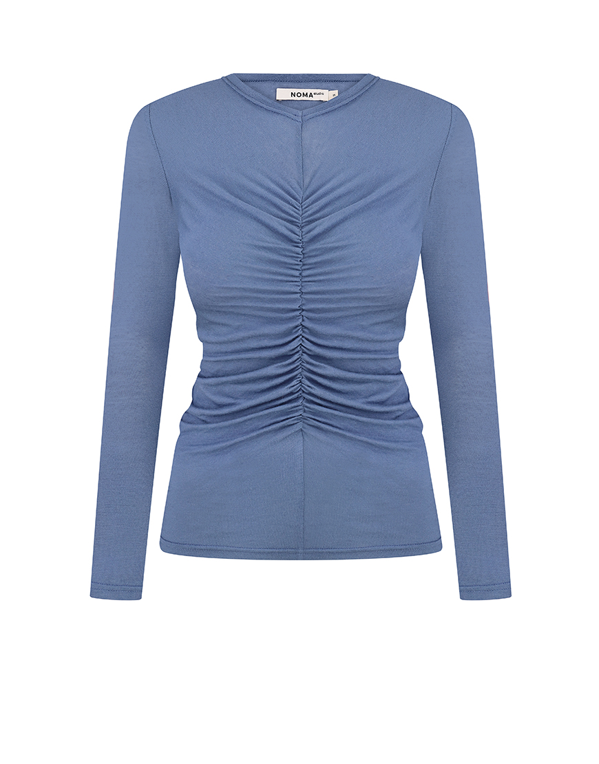 Доставка впродовж 3-5 робочих днівлонгслів у джинсовому кольору з драпіруванням по переду тканина тонка , еластична та має дуже приємні тактильні відчуття.